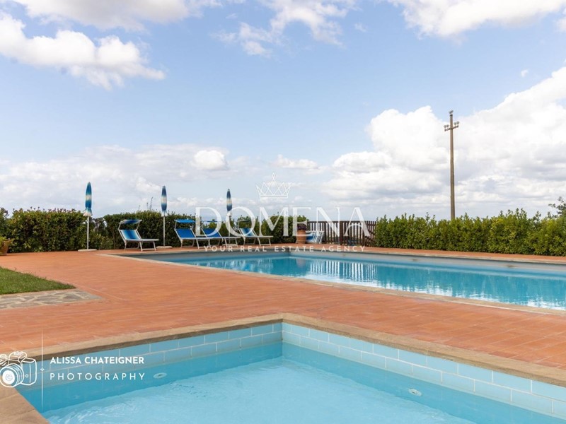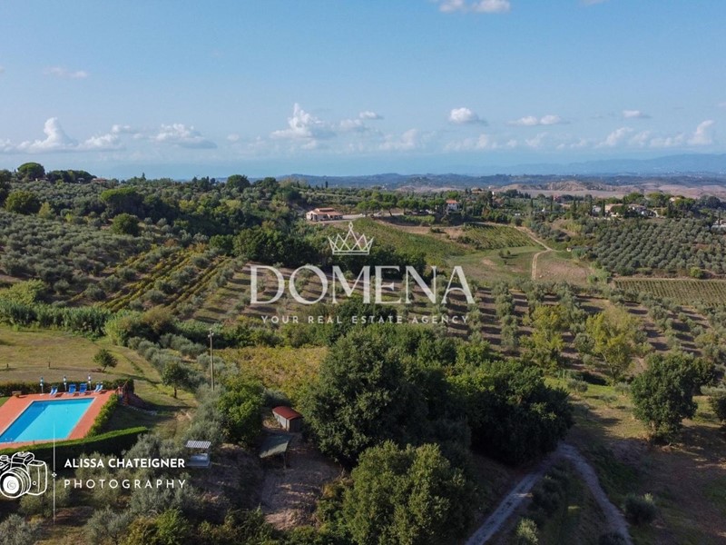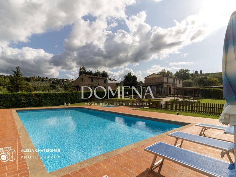 Il complesso con accesso attraverso strada bianca riservata dal centro di Montaione è composto da 2 fabbricati di complessive quattro U.I. con servizio piscina, giardino di pertinenza oltre a terreno agricolo di circa 6,4 ettari circostante.