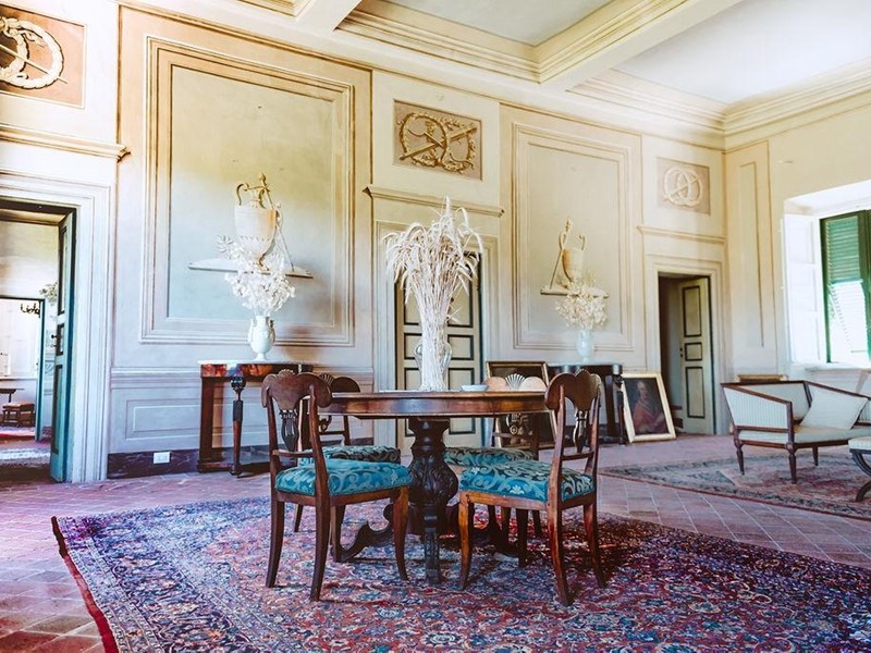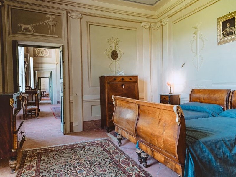 Immersa nella campagna Lucchese a 8 km dal centro di Lucca, splendida dimora d'epoca, la cui prima costruzione risale al XVI secolo di proprietà di una famiglia patrizia. Tra la fine del ‘700 e l’inizio dell’ 800, durante il periodo francese e Napoleonico, la villa assume l’attuale struttura. L’edificio, su pianta rettangolare allungata, si sviluppa su tre piani, con tetto a padiglioni e manto in tegoli ed embrici alla toscana, ed è situato al centro di un parco di 2 ettari totalmente recintato con piscina interrata. Le parti agricole si sviluppano principalmente a nord-est della villa stessa con altri 2 ettari di terreno dove troviamo piante da frutto ed olivi; una casa colonica con pertinenze, una limonaia ed una rimessa attrezzi completano la proprietà. La villa di 1120 mq si compone da: ingresso con salone delle feste affrescato, sala biliardo, sala da pranzo, cucina, altro salottino, biblioteca, studio e bagno; allo stesso piano troviamo l’oratorio e la sacrestia. A mezza di scala padronale in pietra si accede al primo piano che accoglie una sala affrescata, sette camere da letto, di cui due suite, due studi e quattro bagni. Al piano, secondo la mansarda dov’erano anticamente le camere della servitù con scale di accesso indipendenti, troviamo otto stanze, oltre a vani multiuso ed un bagno, il tutto al grezzo da poter personalizzare a proprio piacimento.