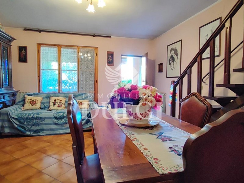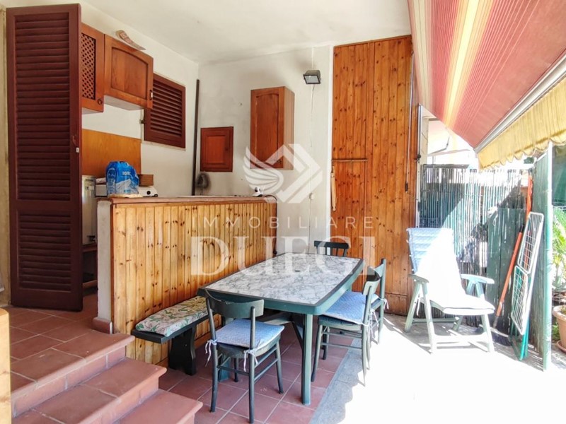 Si compone al piano terra da ampio soggiorno, cucina abitabile, bagnetto di servizio (finestrato), due terrazzine rialzate, il tutto corredato da comodo giardinetto ubicato sulla parte fronte strada dell'immobile e giardino più grande sulla parte posteriore dell'immobile, attrezzato per per pranzi e cene all'aperto.