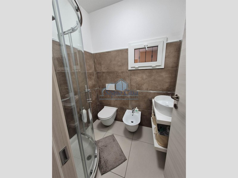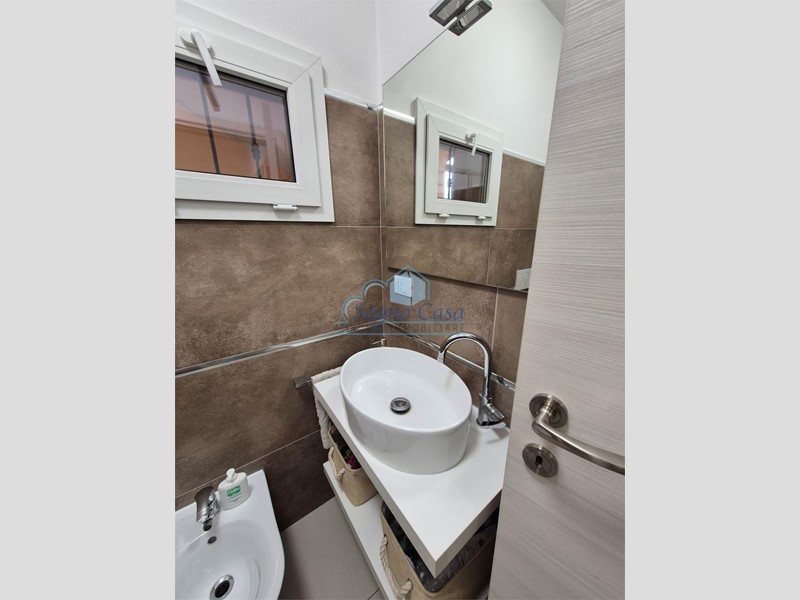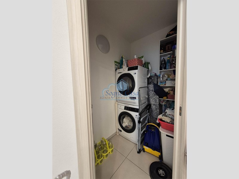 Ingresso e zona giorno: Entrando nell'appartamento, si accede direttamente a un luminoso soggiorno con cucina abitabile a vista. Un ampio ripostiglio completa questa zona, offrendo spazio aggiuntivo per le necessità di stoccaggio.