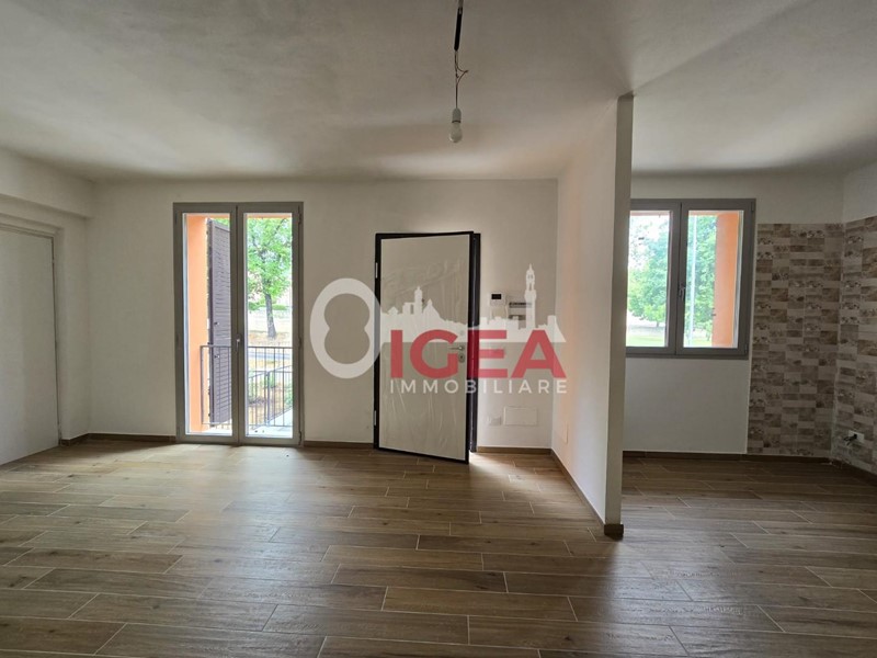 L'appartamento è composto da una zona living molto ampia e luminosa con predisposizione di cucina e soggiorno in openspace, attraverso un disimpegno si raggiunge la zona notte composta da due camere ampie, due bagni di cui uno finestrato. L'appartamento è dotato di impianto di riscaldamento a pavimento e gode di una classe energetica A4.