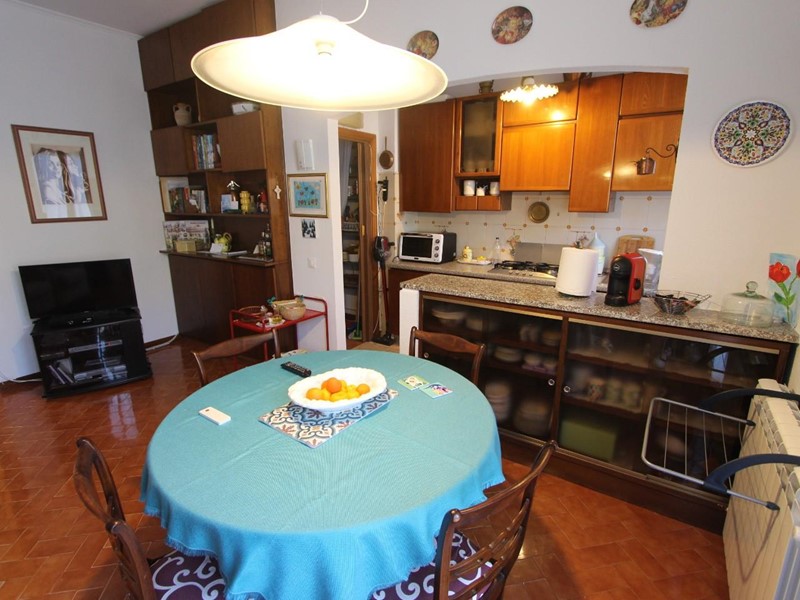 composto da corridoio disimpegno in ingresso, doppia sala con accesso al giardino e vista mare, 3 camere matrimoniali, cucina con dispensa e sala da pranzo, studio, e 2 bagni, riscaldamento autonomo. Posto auto di proprietà