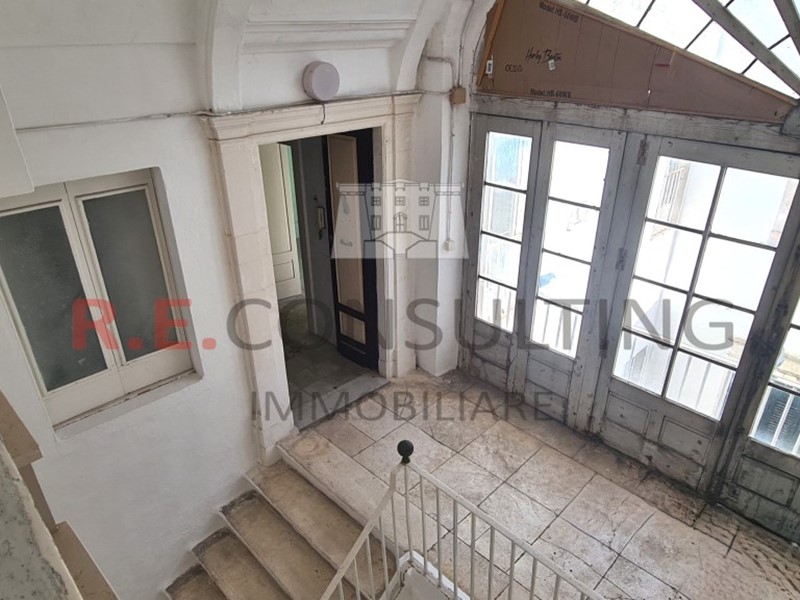 Allocata in un palazzo signorile in pieno centro storico di Martina franca, con un suggestivo affaccio sulla basilica di San Martino e sulla sottostante e affascinante piazza Plebiscito, proponiamo la vendita di una antica dimora posta al secondo piano, asservita da un elegante e ampio androne nel quale sussiste una grande vetrata tipica dei primi del novecento, che illumina la bellissima scalinata interna.