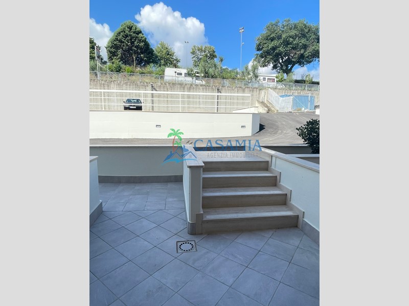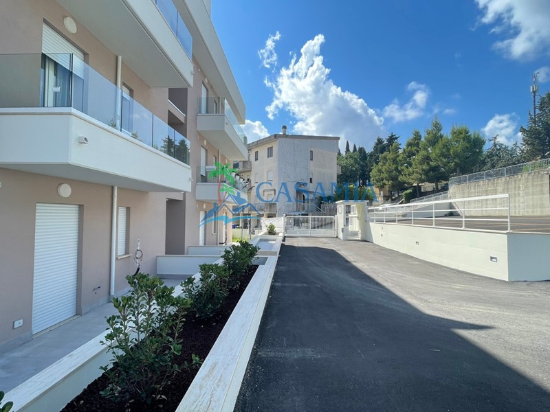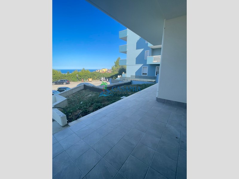ACQUAVIVA PICENA (AP) - RIF. 1164 ECO RESIDENZA in Classe energetica A in location di pregio ai piedi della stupenda cittadina medioevale, con vista panoramica sul mare e sulle montagne e in adiacenza con un parco pubblico. I materiali da costruzione sono di alta qualità di provenienza esclusivamente italiana, manodopera e forniture dei migliori artigiani della zona, vernici anallergiche e antimuffa. La zona ha un bassissimo inquinamento elettromagnetico, acustico ed atmosferico e per la realizzazione del complesso è previsto l'utilizzo di almeno il 50% di energie rinnovabili. L'edificio rispetta tutti i criteri previsti dalla normativa antisismica. L'unità abitativa di 61 mq coperti posta al primo terra-rialzato ha esposizione sud-est, ingresso indipendente dal giardino e si compone di ingresso, soggiorno con angolo cottura, disimpegno, un bagno principale finestrato con doccia, un ripostiglio, una cameretta ed una camera matrimoniale. Completano la proprietà un giardino perimetrale per un totale di circa 165 mq ed un comodo posto auto nell'area antistante l'abitazione. Ottime rifiniture interne di assoluto pregio, impianto di riscaldamento a pavimento, impianto ventilazione meccanica controllata degli interni, pannello fotovoltaico, predisposizione impianto d'allarme ed aria condizionata, parabola satellitare condominiale, sanitari sospesi, videocitofono e portoncino blindato. Possibilità di abbinamento con garages, fondaci e posti auto ad un prezzo da computare a parte. Agenzia immobiliare CasaMia.