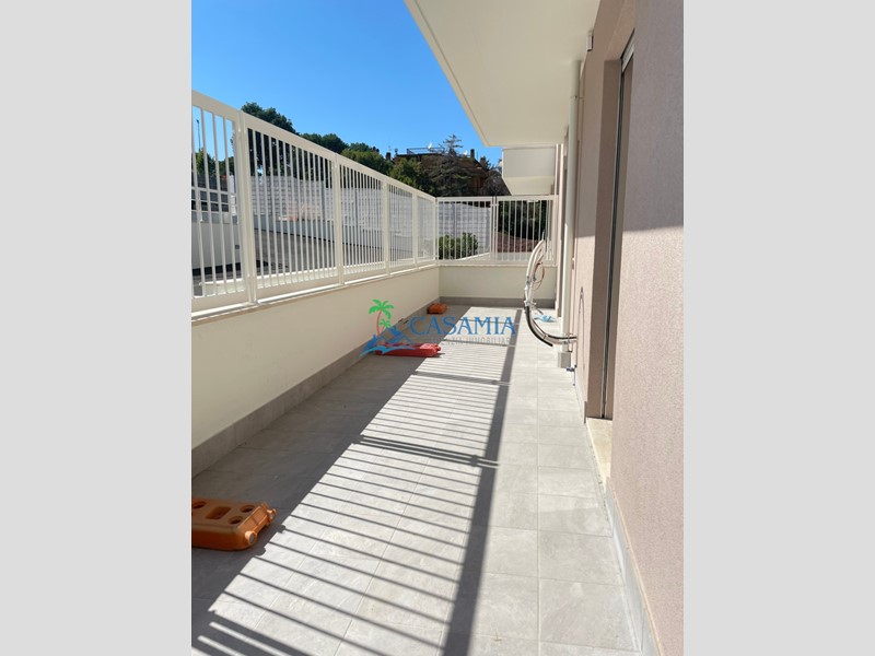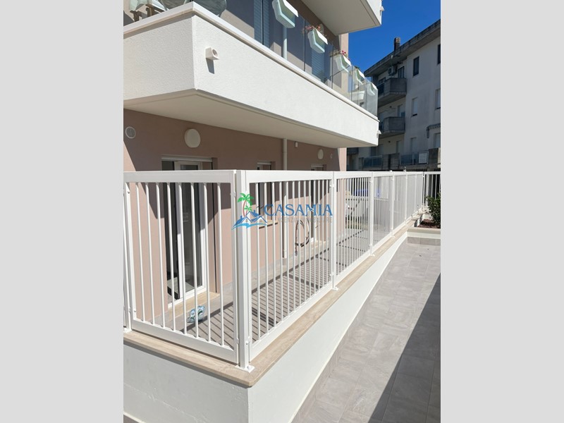 ACQUAVIVA PICENA (AP) ECO RESIDENZA in Classe energetica A in una location di pregio ai piedi della stupenda cittadina medioevale, con vista panoramica sul mare e sulle montagne e in adiacenza con un parco pubblico. I materiali da costruzione sono di alta qualità di provenienza esclusivamente italiana, manodopera e forniture dei migliori artigiani della zona, vernici anallergiche e antimuffa. La zona ha un bassissimo inquinamento elettromagnetico, acustico ed atmosferico e per la realizzazione del complesso è previsto l'utilizzo di almeno il 50% di energie rinnovabili. L'edificio rispetta tutti i criteri previsti dalla normativa antisismica. L'unità abitativa di 76 mq coperti posta al piano terra ha esposizione sud-ovest e si compone di ingresso, soggiorno con angolo cottura, stanza ad uso lavanderia, disimpegno, un bagno principale finestrato con doccia e due camere matrimoniali. Completa la proprietà un comodo giardino in parte in erba ed in parte pavimentato per un totale di circa 80 mq. Ottime rifiniture interne di assoluto pregio, impianto di riscaldamento a pavimento, impianto ventilazione meccanica controllata degli interni, pannello fotovoltaico, predisposizione impianto d'allarme ed aria condizionata, parabola satellitare condominiale, sanitari sospesi, videocitofono e portoncino blindato. Incluso nel prezzo un posto auto esterno nella corte esterna condominiale. Garage e fondaco da computare a parte. Riferimento codice 326. Agenzia immobiliare CasaMia.