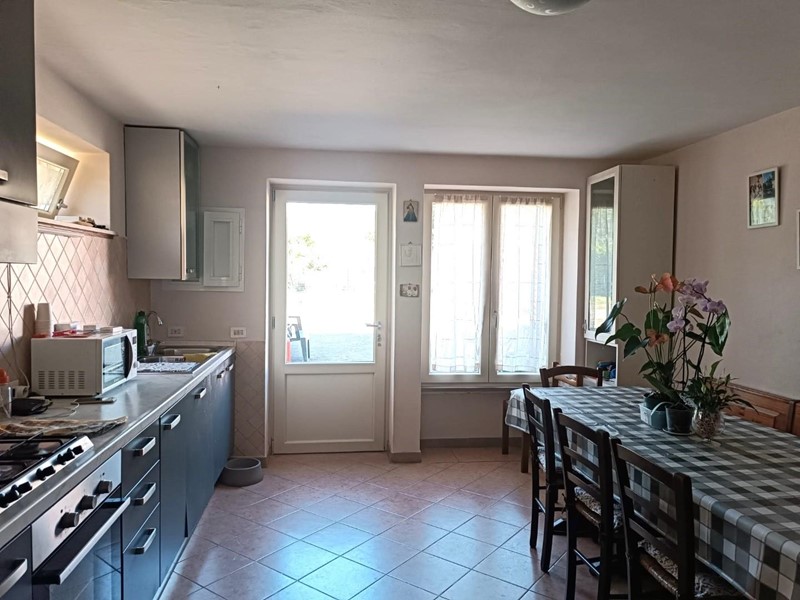 Il piano terra è caratterizzato da un grande soggiorno doppio con camino, ideale per serate in famiglia o con amici. Troverete inoltre una seconda cucina, due camere, una camera singola, un ripostiglio e un secondo bagno con doccia e finestra. Il riscaldamento è garantito da una caldaia a pellet, supportata da pannelli solari per un'efficienza energetica ottimale.