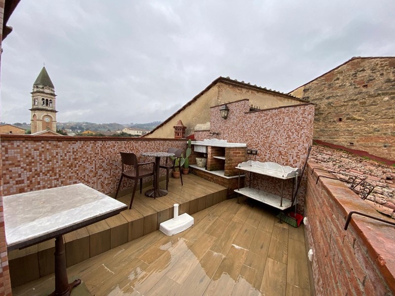 Nella piazza principale, a pochi passi dall'ingresso delle terme, proponiamo terratetto recentemente ristrutturato con rifiniture di lusso. L'immobile si sviluppa su tre livelli oltre alla terrazza sul tetto. Al piano terra troviamo l'ingresso con un ripostiglio/guardaroba e l'acceso all'ascensore panoramico oltre alla scala; al primo piano troviamo l'ampio soggiorno con angolo cottura con affaccio sul balcone con vista sulla piazza; Tra il primo e secondo piano troviamo un bagno di servizio. Al secondo piano troviamo una camera matrimoniale ed un bagno padronale, mentre al terzo piano troviamo un'altra camera, un altro bagno ed una sala. Infine da quest'ultimo attraverso una scala interna accediamo alla terrazza con spettacolare vista sulle colline. Per accedere ai vari piani oltre alla scala interna è possibile utilizzare l'ascensore privato.