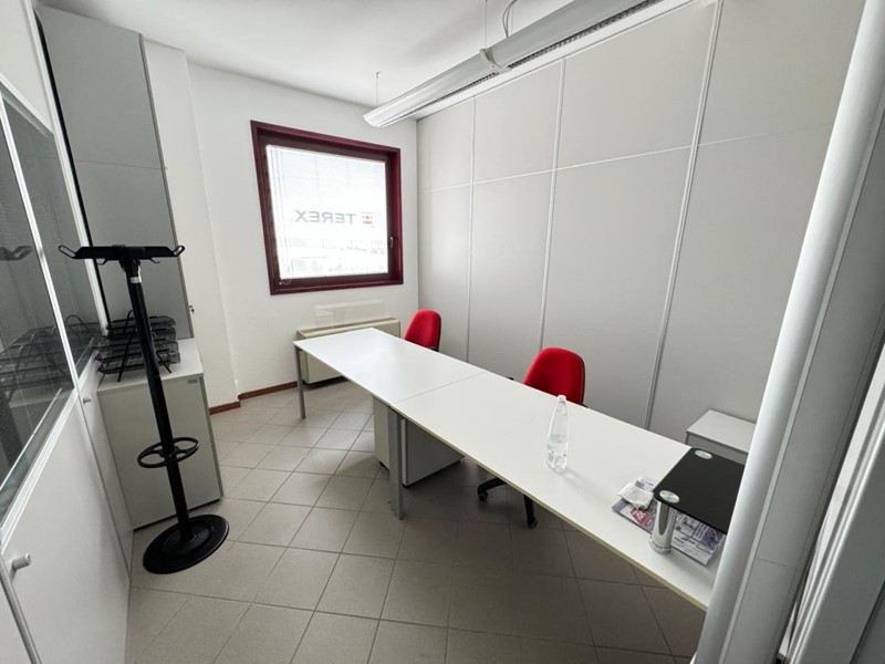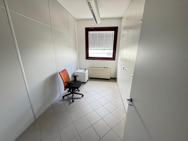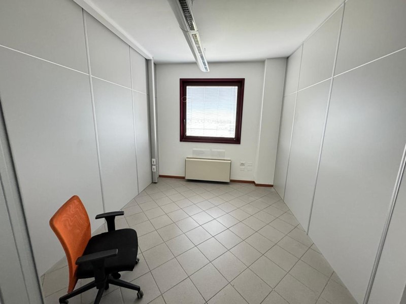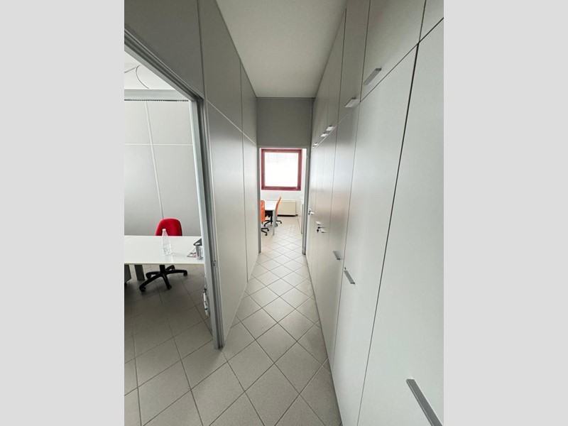 tre vani già suddivisi con pareti divisorie in sala riunioni, cinque uffici, doppi servizi e ripostiglio.