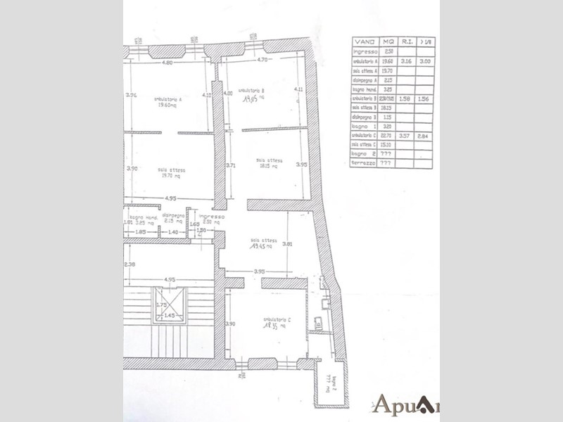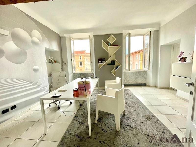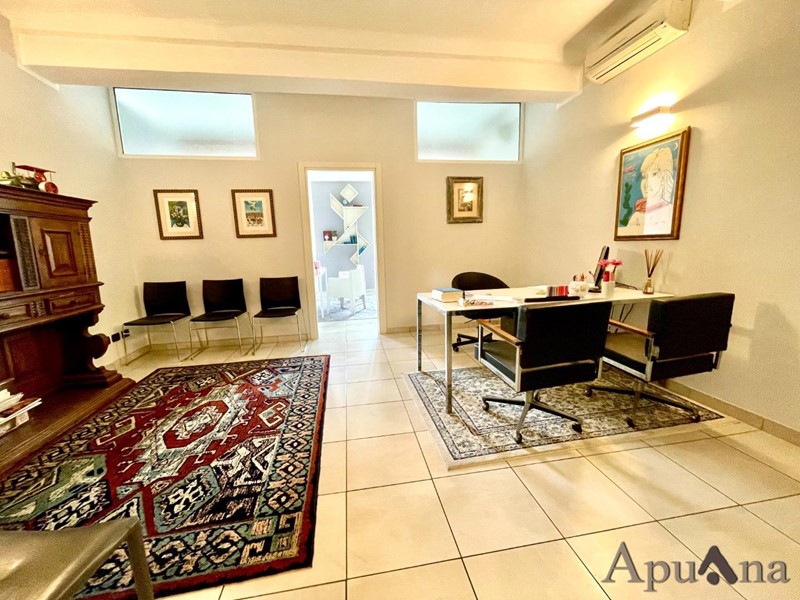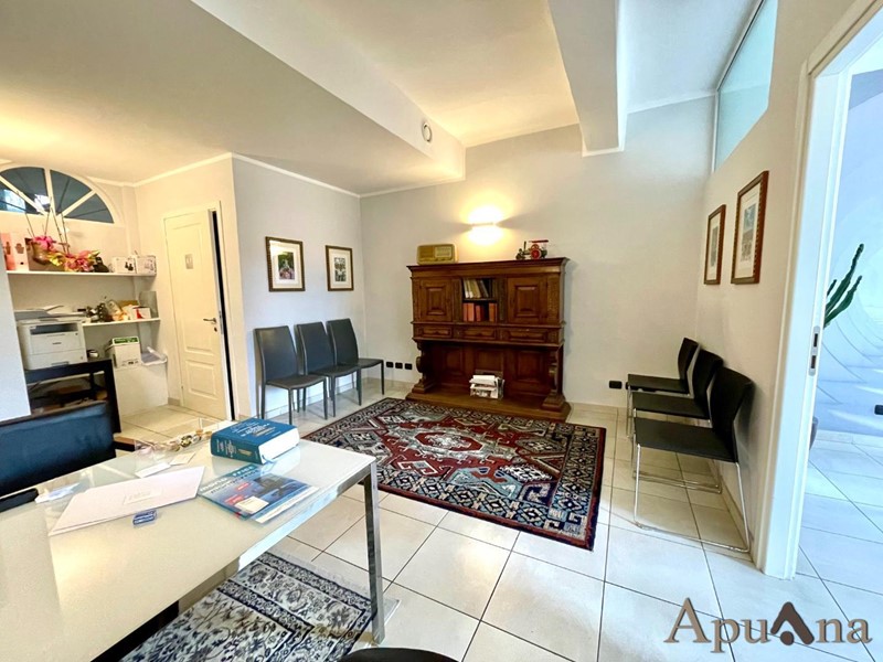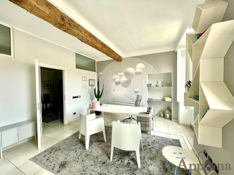 L'immobile è dotato di due ingressi, e attualmente è adibito ad uso ufficio ed è locato fino al 2025. L'ingresso principale è nel disimpegno, dal quale si accede al soggiorno con bagno e all'ampia stanza che potrebbe essere adibita a cucina. Per la distribuzione degli spazi interni è possibile ricavare fino a quattro camere da letto, due delle quali con bagno. L'immobile si presta a diverse soluzioni, tra le quali la divisione dell'immobile in due appartamenti di tre locali ciascuno.