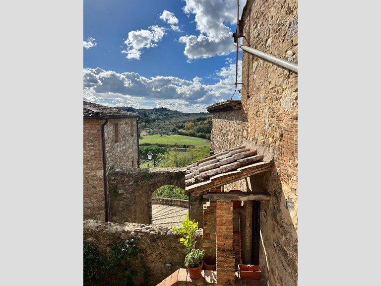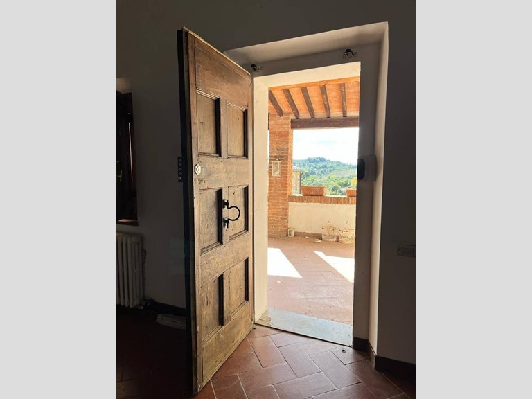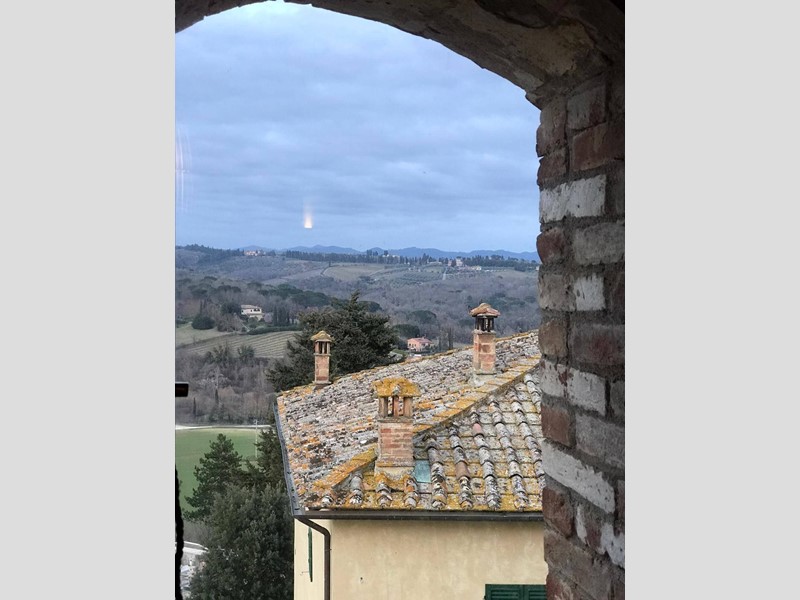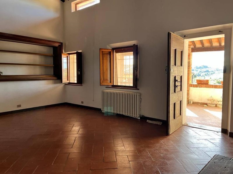 Siena in uno storico grazioso castello a km 4 ca da Siena pregevole appartamento di mq. 165 + 20 di loggiato esclusivo, maestoso salone con camino, sala da pranzo, cucina abitabile, due camere matrimoniali, due grandi bagni finestrati, soffitti alti in stile rustico con travi e travicelli, due posti auto esclusivi, panoramico sulla Città e sullo stupendo circostante. territorio coltivati a vigneti. Sono compresi nella vendita adiacenti ruderi di mq. 100 ca recuperabili verosimilmente anche per civile abitazione, nonché la "scarpata" sottostante a verde
