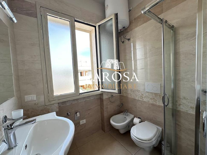 L'appartamento al primo piano, al quale si accede tramite una scala ubicata al piano terra, è di forma rettangolare con esposizione angolare. La porta d'ingresso è in doppio vetro/PVC, con persiane bianche in PVC. La Cucina e Sala da Pranzo sono distribuite ad ambiente unico molto luminoso grazie alle due finestre, una affacciata su pubblica via e l'altra sul cortile retrostante e una porta finestra per l’accesso all’appartamento. Il Bagno, dotato di doccia, sanitari e finestra con affaccio su pubblica via, il tutto rifinito con materiali di qualità. Infine le due camere da letto, ampie e confortevoli entrambe con finestre, una affacciata su pubblica via e l'altra sul cortile retrostante, completano questo meraviglioso immobile.L'appartamento offre comfort e praticità, con finiture di qualità e una posizione privilegiata vicino al mare.