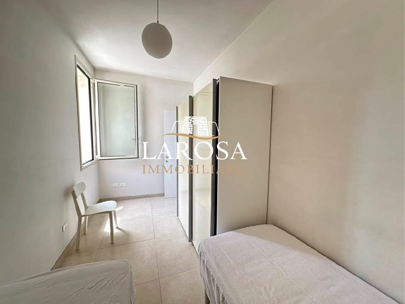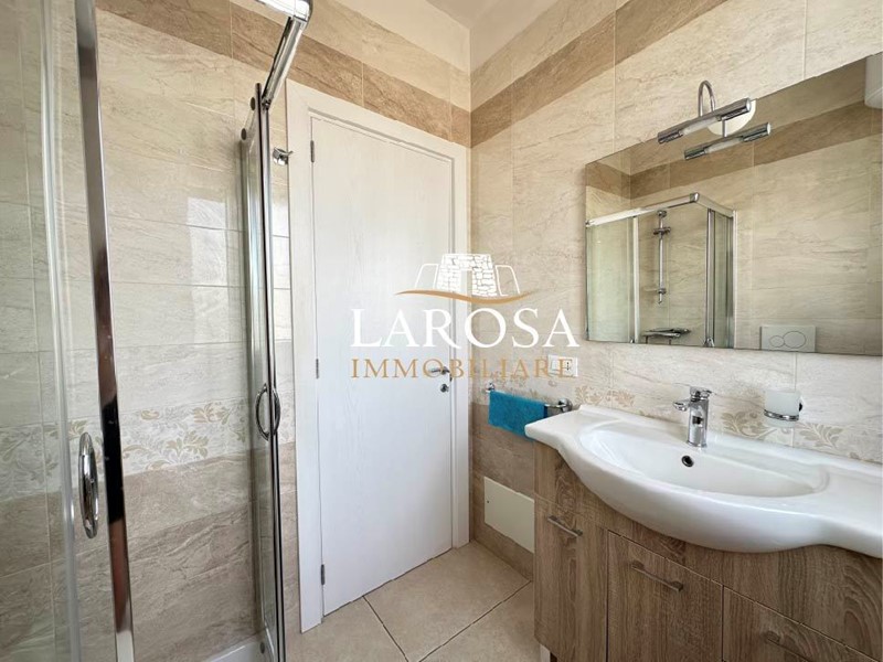 Il secondo appartamento è molto simile al primo, ma presenta un bagno leggermente più piccolo e una corte retrostante di dimensioni maggiori, completa di un ripostiglio esterno con doccia e lavabo. Entrambi gli appartamenti offrono comfort e praticità, con finiture di qualità e una posizione privilegiata vicino al mare.