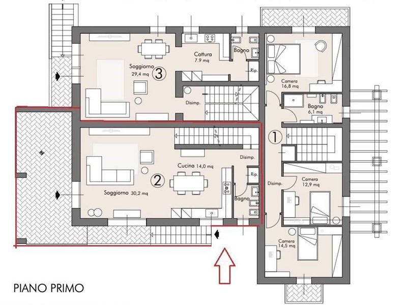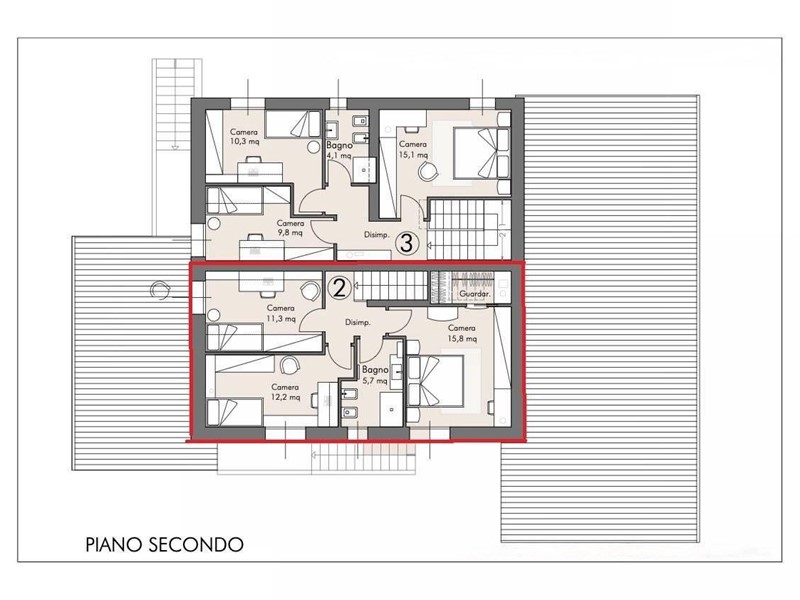 Cascina € 485000 - In posizione centrale vicina a tutti i servizi, proponiamo in vendita villetta angolare inserita in fabbricato di tre unità corredata da giardino privato di circa 700 mq. L' abitazione si articola su più livelli ed è così composta ; al piano terra ampia taverna finestrata con loggiato di circa 20 mq con accesso al grande giardino privato che ospita anche due posti auto locale lavanderia, ripostiglio con predisposizione per un bagnetto di servizio e scala interna per accedere al piano superiore, al piano primo al quale si accede sia da scala interna che da scala esterna con terrazzo, ingresso nel salone con terrazza abitabile, cucina, bagnetto di servizio e ripostiglio; al piano secondo disimpegno notte, camera matrimoniale con cabina armadi e due camere singole, bagno con finestra e doccia. Ottimo oggetto per posizione e ampie metrature le rifiniture di pregio, impianti tecnologici ed infissi di ultima generazione garantiscono elevate prestazioni termiche ed acustiche, solare termico. Possibilità di personalizzazioni. Classe energetica: A1 - Rif. 1554 VILLETTA N°2