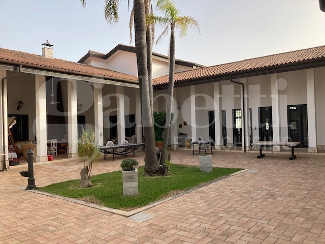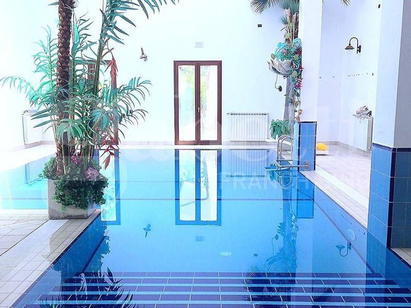 Proponiamo Prestigiosa Villa, in un contesto residenziale e tranquillo. All'ingresso, un ampio e luminoso salone doppio con camino, elemento centrale della casa, per la sua particolare struttura, camera studio, cucina abitabile in muratura, 3 camere da letto servite da bagno. Da un'elegante scala, si accede alla zona notte, con 3 camere da letto e bagni privati. Al piano seminterrato, una spaziosa e comoda taverna, Salone, cucina e 2 camere soppalcate con bagni privati. L'immobile presenta caratteristiche di design eleganti, ampie vetrate con affaccio sul giardino, termoautonomo, climatizzato, infissi doppio vetro camera ed impianto di video sorveglianza. A completare la proprietà, un bellissimo giardino ornamentale che introduce alla casa, ne accompagna in modo gradevole l'ingresso attraverso piante basse, cespugli e un'attenta combinazione di diversa tonalità e grandezza, a creare una piacevole alternanza cromatica. Un angolo speciale ottenuto all'esterno della casa, un Patio in legno perfetto per un ambiente intimo e riservato, semplicemente, un'accogliente zona di lettura, riservando lo spazio verde per i giochi dei bambini o per ricevere gli amici. Completano la proprietà una bellissima piscina coperta, auto riscaldante, con docce, 6000 mq ca di giardino con diffuso impianto elettrico e d'irrigazione a scomparsa per il prato inglese. Ottime rifiniture. Trattativa in sede
