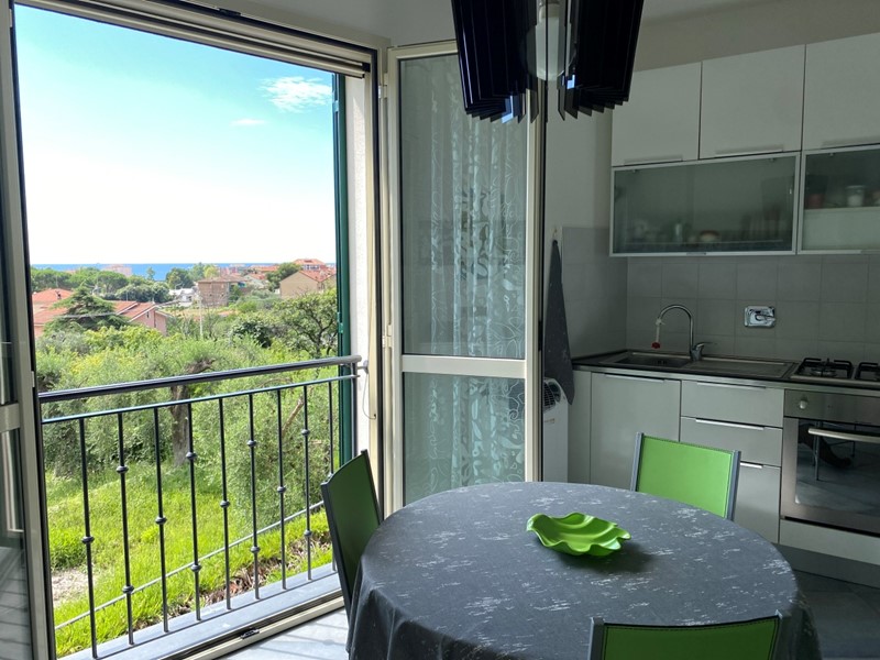 San Bartolomeo al mare a 1,2 km dal mare. Vi proponiamo in vendita appartamento bilocale sito nell'ambito di un complesso edificato nel 2008. Appartamento posto al primo piano, esposto a sud composto da ingresso, soggiorno con angolo cottura, camera, bagno. Ingresso indipendente. Posto auto coperto. Cantina. Impianto di condizionamento. Vista mare.