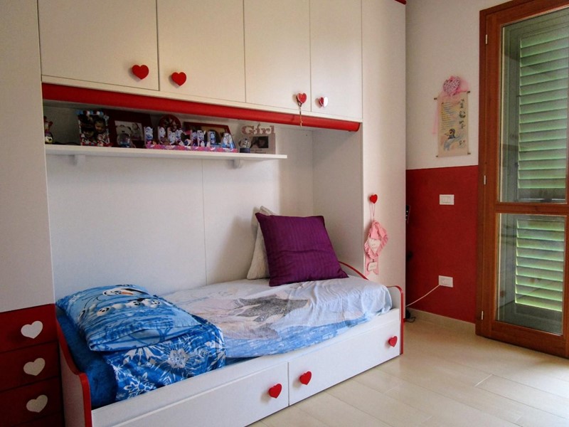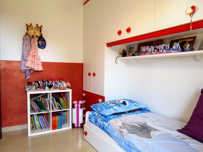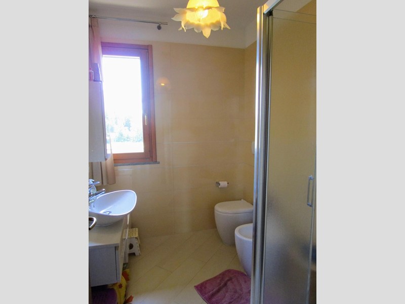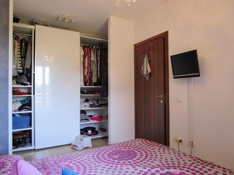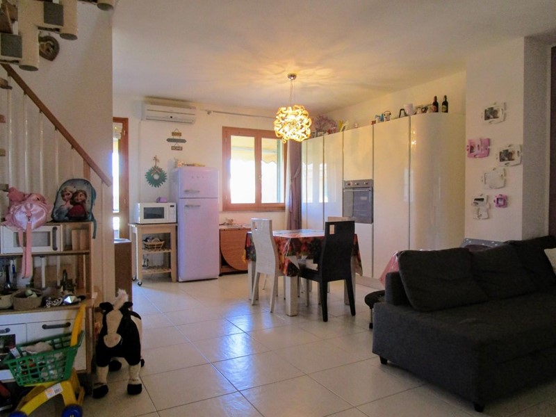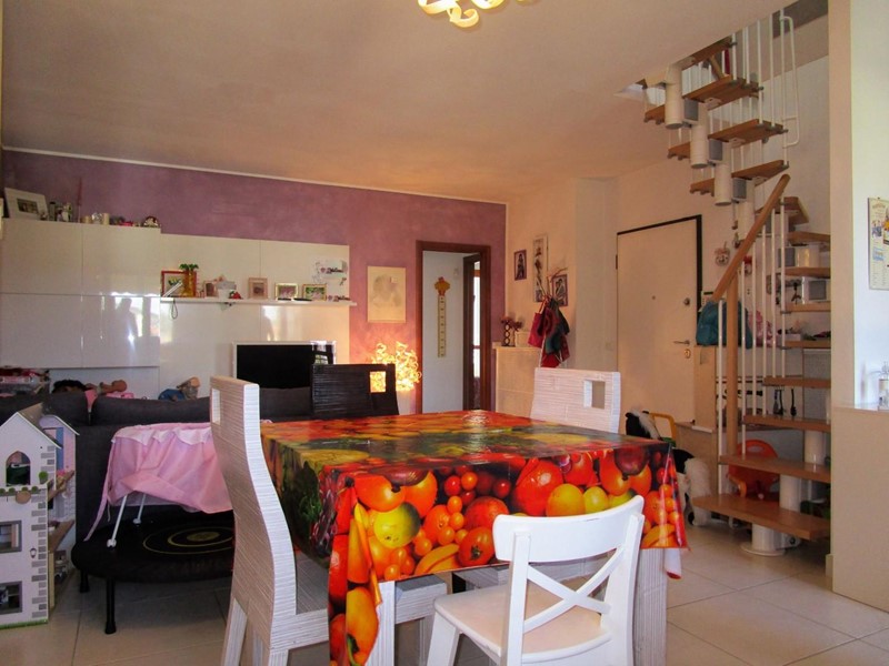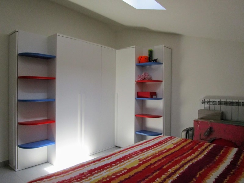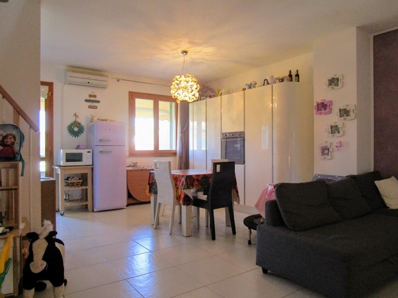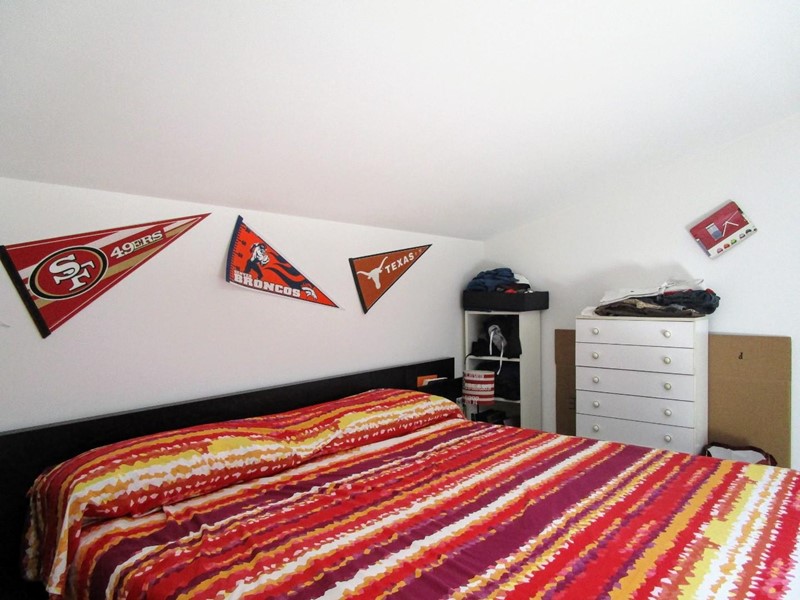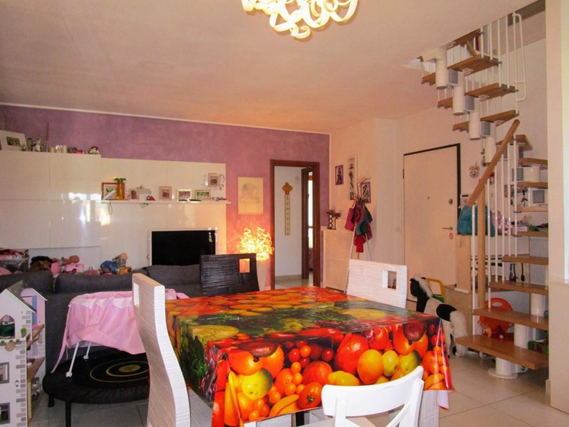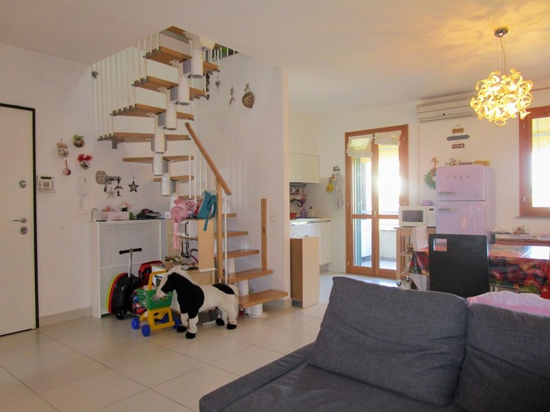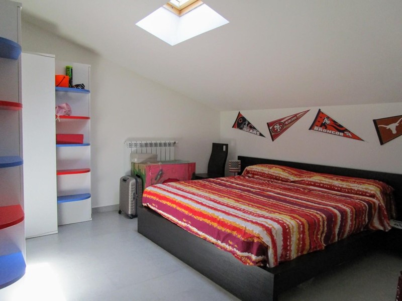 L'abitazione si sviluppa su due piani. Al piano principale troviamo la zona giorno open space composta da soggiorno e cucina abitabile, con balcone. La zona notte è composta da camera matrimoniale e camera doppia, entrambe con accesso al balcone, oltre a bagno con doccia. La camera matrimoniale è dotata di una comoda cabina armadio. Da scala in legno nel soggiorno si accede al piano superiore mansardato dove troviamo un secondo soggiorno, una terza spaziosa camera e il secondo bagno completo con doccia, oltre ad un locale ripostiglio lavanderia. Completa la proprietà il garage.