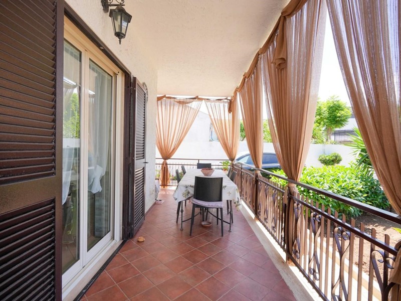 La villa ha doppia esposizione ed è dotata di: pavimentazione in gres porcellanato, piastrelle ceramiche a rivestimento nel bagno e cucina, infissi interni in legno naturale, infissi esterni in pvc con vetrocamera, riscaldamento autonomo con caldaia murale a gas metano, radiatori in ghisa e termoarredo, impianto di climatizzazione, impianto di allarme predisposto, persiane in anticorodal, impianto luci di emergenza.