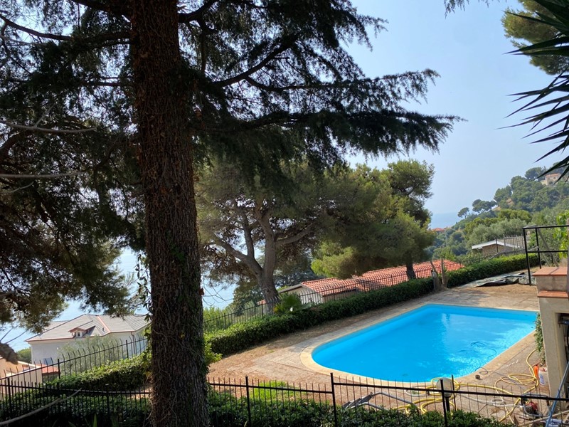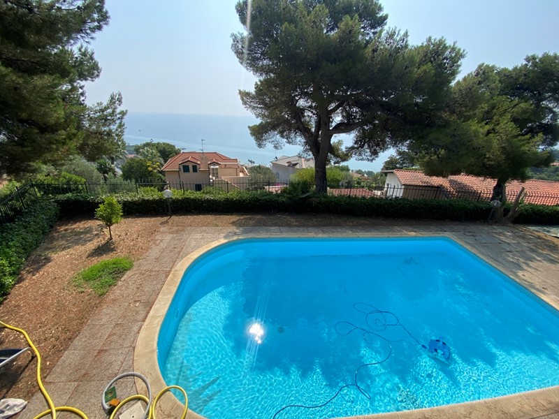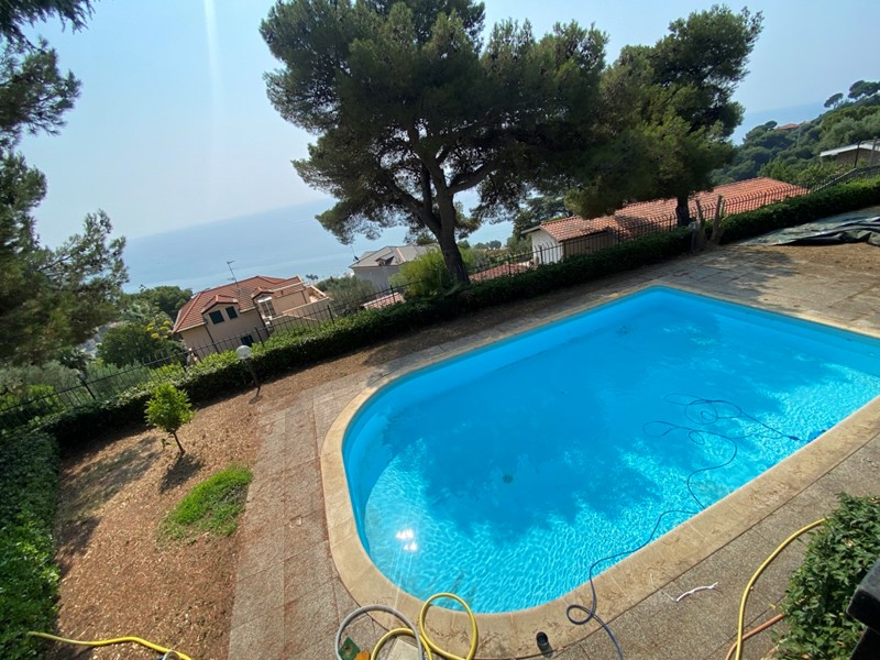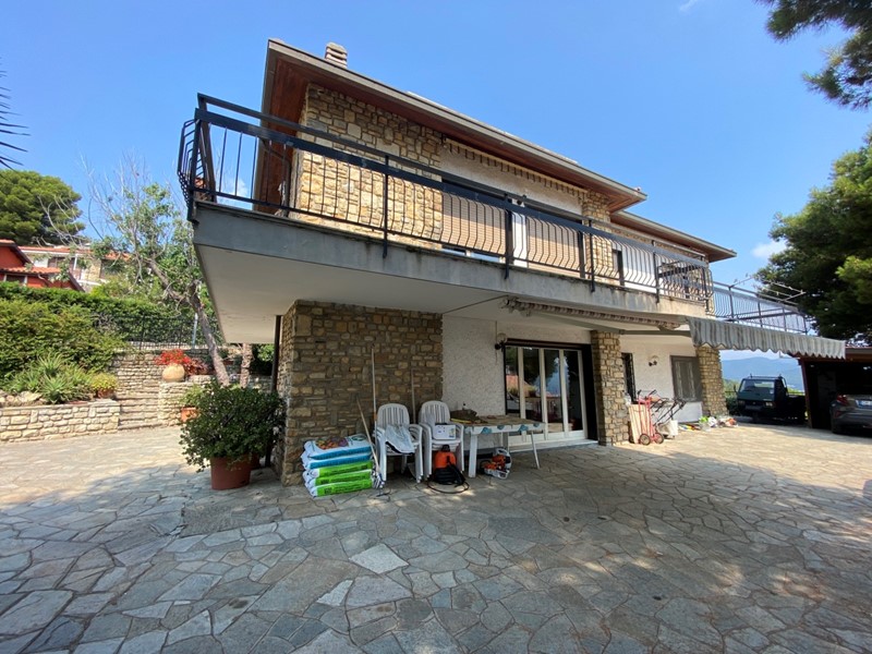 Andora - a 2 km dal mare proponiamo in vendita villa bifamiliare con piscina disposta su due piani con due ingressi indipendenti. L'immobile ha un terreno circostante di circa 1000 mq ed è cosi composto: P.1. - Ingresso in corridoio, ampio salone con zona pranzo, cucina abitabile, due camere da letto matrimoniali, una camera singola, bagno finestrato. Dal salone e camera da letto si accede sul terrazzo vista mare. P.T. - Ingresso in corridoio, ampio salone, cucina abitabile, una camera da letto matrimoniale, una camera singola, studio, bagno finestrato. Due piani sono collegati con la scala a chiocciola. Riscaldamento autonomo a metano. Panelli fotovoltaici per l'alimentazione impianto elettrico Vista mare. Piscina.