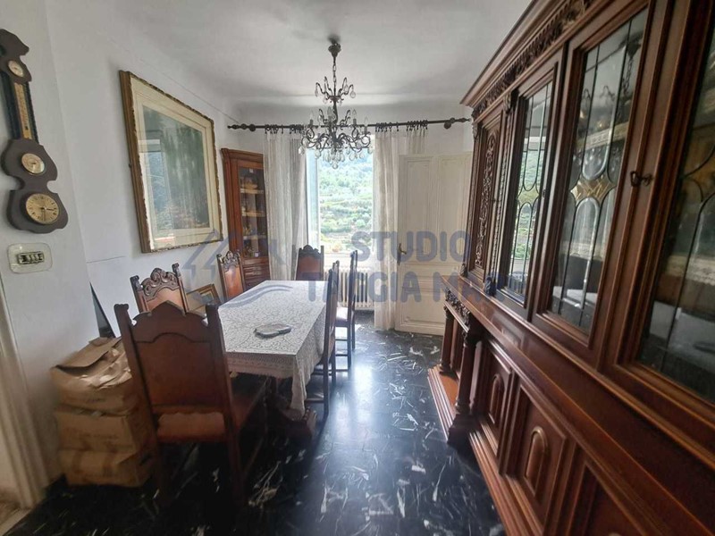 Porzione di casa in vendita a Badalucco.In zona residenziale,in casa trifamiliare,al primo piano alloggio di circa 100 metri composto da ingresso su corridoio,sulla sinistra troviamo la cucina abitabile dove possono mangiare comodamente quattro persone,di fronte alla cucina abbiamo una cameretta,subito dopo la cameretta abbiamo il primo bagno grande con vasca,dove volendo si può avere sia vasca che doccia,la sala da pranzo più adatta dove mangiare comodamente quando si ha ospiti,il secondo bagno con doccia dove è posta la caldaia che serve tutta la casa e la camera matrimoniale di oltre venti metri quadri;la casa è l'ideale per una famiglia numerosa,vivibile da subito tenedo presente che l'ultima ristrutturazione è di circa trentacinque anni fa,la posizione invidiabile rende la casa molto luminosa per tutto l'arco della giornata,completano la proprietà l'uso esclusivo di un ampio terrazzo di circa 50 metri con vista aperta sulla Valle Argentina,una striscia di giardino ed una cantina.