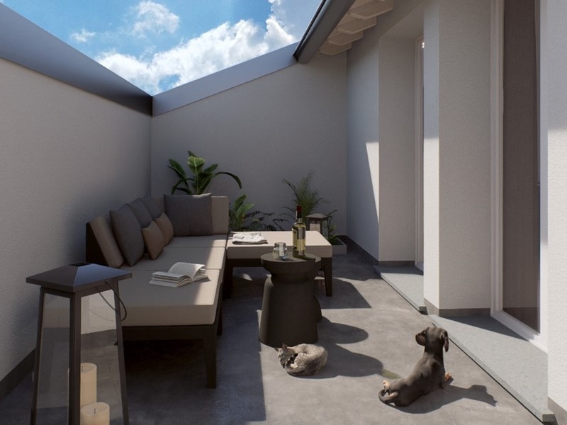 A due passi dal Centro e dalla Villa Reale, proponiamo BILOCALE MANSARDATO di nuova costruzione. L'appartamento di 55 mq, è così composto: ingresso, sala con terrazzo a pozzo di 15mq, spazio lavanderia, cucina ad angolo cottura, disimpegno notte con ampia camera matrimoniale e bagno. Completa la soluzione box singolo ( and euro; 30.000,00 a parte ). L'ascensore verrà FINE LUGLIO 2025. Le caratteristiche includono travi a vista, un'altezza interna massima/minima di 4,00/1,80 metri, parquet in tutta la casa, predisposizione per impianto domotica, impianto di climatizzazione e antifurto. La zona è ben servita da scuole, supermercati, uffici postali, banche, negozi di quartiere e giardini pubblici nelle immediate vicinanze.\n\nContattaci al 333.7548638 (anche via sms o whatsapp) per ulteriori info o per un appuntamento!!! Tutte le informazioni qui fornite sono da ritenersi puramente indicative e non costituiscono in alcun modo elemento contrattuale. I dati relativi alle superfici sono approssimative , non hanno valore contrattuale e non sono in alcun modo vincolanti nella trattativa di vendita. I beni vengono venduti o affittati a corpo e non a misura. - Maggiori Dettagli: Porta blindata, Persiane, Doppi vetri, Videocitofono , Serramenti in pvc, Riscaldamento a pavimento