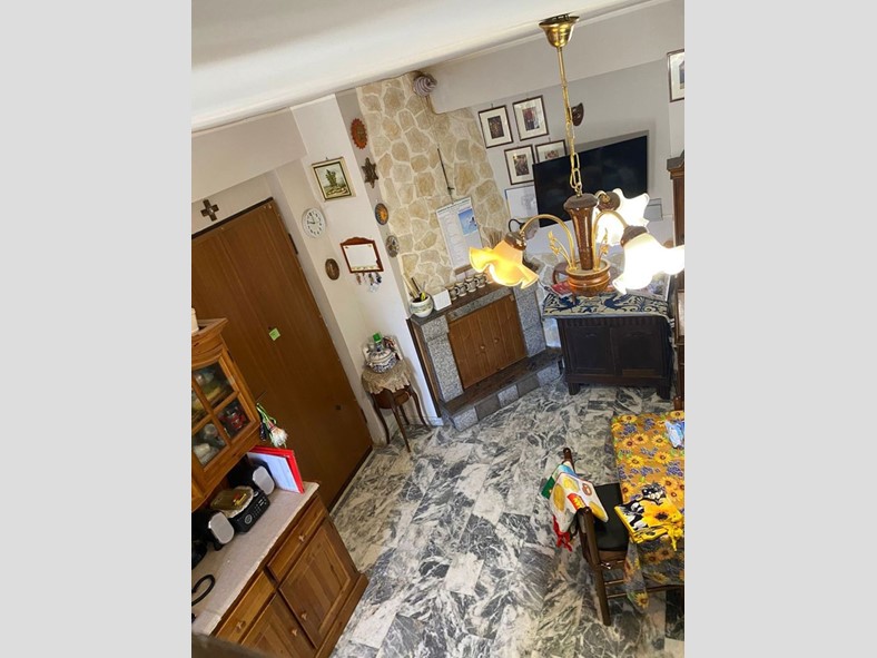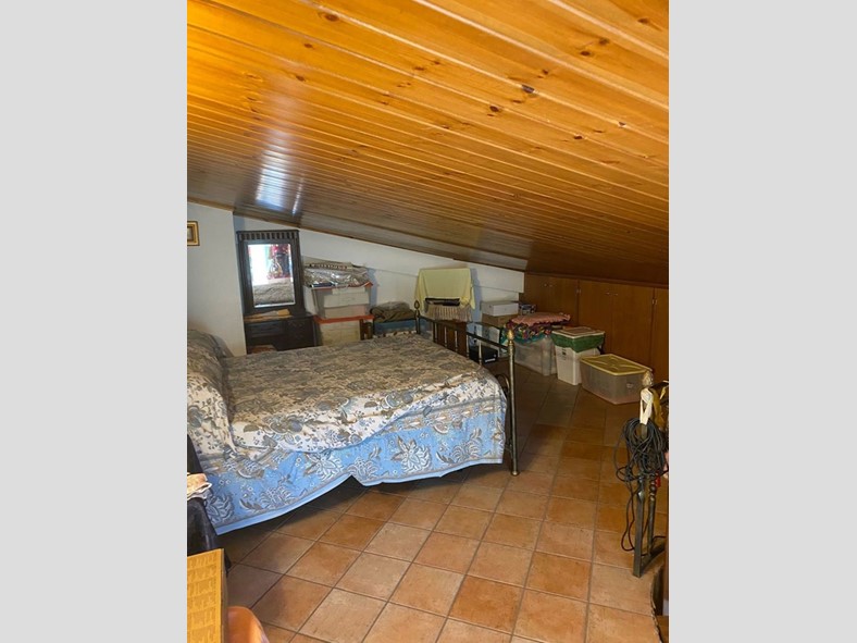 Appartamento 1°p.: soggiorno con angolo cottura e camino, camera, bagno, cam,era mansardata, balcone. Metà garage, 2 cantine e giardino al p.t.. Cl.en. G. I.p.e.>175 kwh/mq/anno.