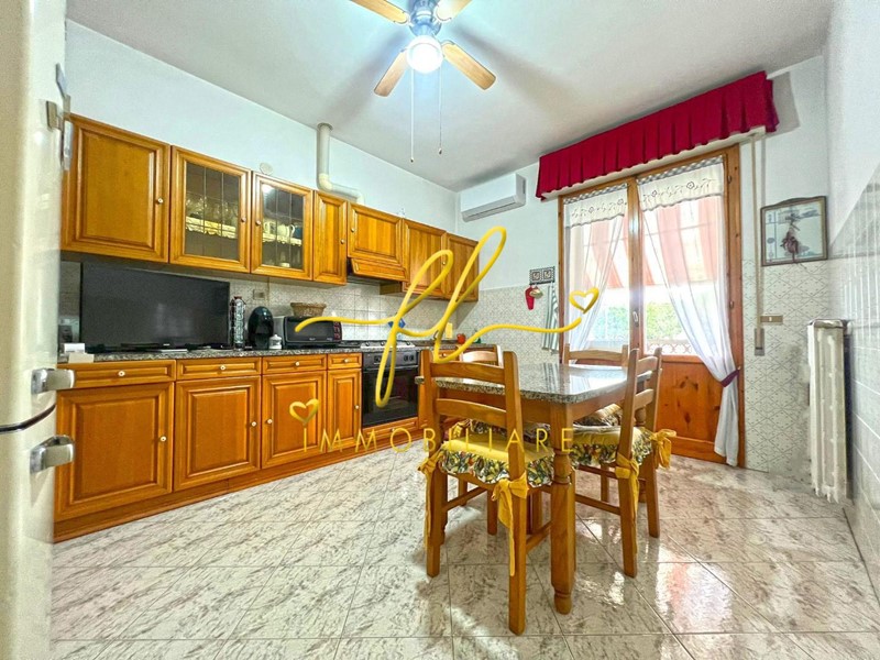 FL IMMOBILIARE di GRETA LORENZI vende in ESCLUSIVA! Vicino a tutti i servizi e soprattutto a 200 mt dalle nostre spiagge, proponiamo questo bellissimo immobile situato al piano primo di una Bifamiliare con giardino dove poter trascorrere le serate estive in compagnia di amici, vista la sua particolare ampiezza, inoltre troviamo frutteti e ulivi. L'immobile ci accoglie in una luminosa zona soggiorno- cucina con grande terrazzo, un’ampia sala, disimpegno, camera matrimoniale, camerina, 2 bagni, ripostiglio ed un ampio studio con possibilità di ricavare una terza camera. Scendendo da una scala esterna, passando dal giardino, si accede ad un garage adibito a Bilocale con bagno. Il riscaldamento è termoautonomo a metano, condizionatore e presenza di un pozzo in giardino. Nessuna spesa condominiale!