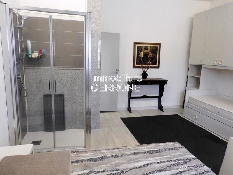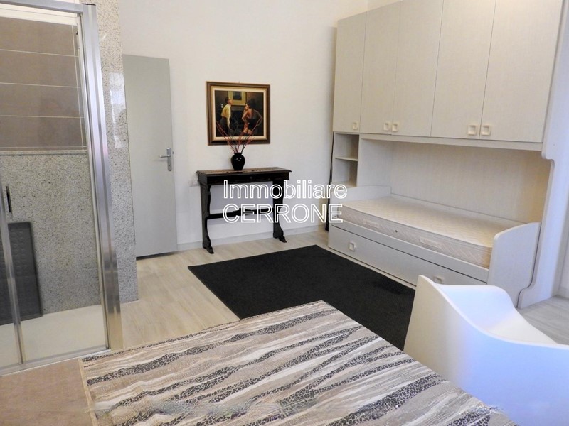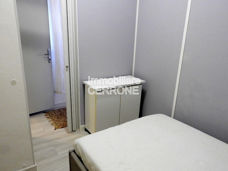 L’appartamento si estende su una superficie di circa 50 mq. e si compone di una camera da letto di generose dimensioni con un piccolo bagno, la zona soggiorno/cucina, nella quale attualmente è stata ricavata una seconda camera, ed infine il bagno finestrato con box doccia.