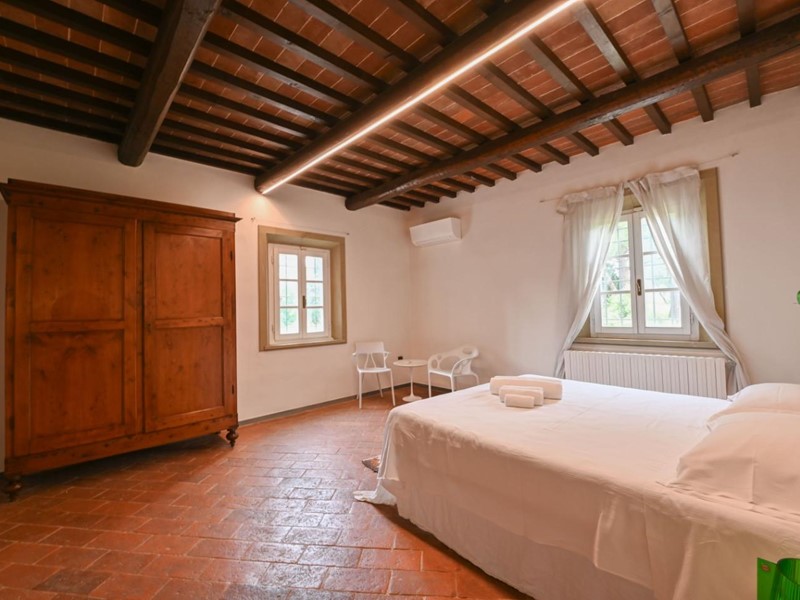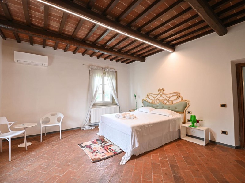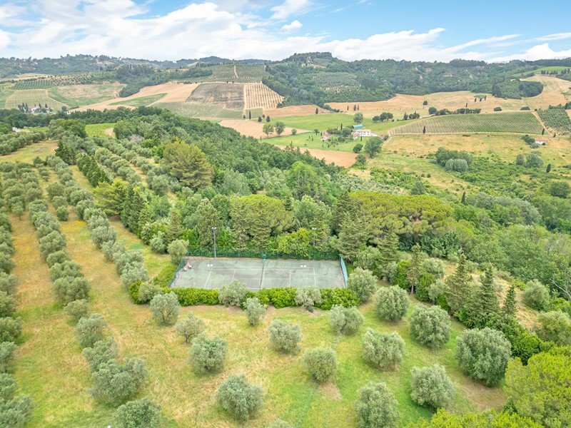 SAN MINIATO: RUSTICO/CASALE - Bellissima dimora inserita nella campagna Toscana tra San Miniato Pisa e Firenze. Circondata da ampio parco con piscina e campo da tennis oltre terreno agricolo di oltre 15 ettari. Situata su di un poggio gode di una vista panoramia a 360 gradi. L’edificio presenta rifiniture di pregio con tanto di torretta, pavimenti in cotto dell'impruneta, soffitti con travi in legno e mezzane, cucina in muratura, i rivestimenti dei marmi in pregiato marmo di Carrara. Gli infissi esterni sono in legno con doppi vetri e le scale sono in pietra, impianto di allarme. Il fabbricato ha subito un'importante ristrutturazione ed è adibito attualmente a struttura ricettiva. Si compone di due piani fuori terra oltre locale lavanderia e monolocale con ingresso indipendente e bagno. L'ingresso principale, con esposizione sud, si raggiunge dal carrabile tramite vialetto. Si entra nella dimora attraverso un importante ingresso, sul quale si affacciano a sinistra: zona pranzo dotata di ampio camino, cucina abitabile, a destra: due saloni di cui uno dotato di camino e, alla fine del corridoio, un comodo bagno. Dalla cucina si accede al grande e caratteristico porticato toscano, lato nord ovest, in cui è presente un bellissimo forno a legna per pranzi e cene all'aperto. L’abitazione è dotata anche di ingresso sul retro. Le scale conducono al piano superiore dove sono presenti quattro ampie camere matrimoniali di cui una dotata di bagno, altro bagno e uno studio. In corrispondenza della grande camera, sul lato est, è presente un ulteriore vano al piano secondo al grezzo, con possibilità di ampliamento. Il terreno che circonda la proprietà è dotato di due pozzi. Boschi, oliveti e frutteti a perdita d'occhio. OTTIMA soluzione per godere il meglio della campagna Toscana e i frutti della sua terra! Interessante proposta immobiliare come abitazione o come attività ricettiva! Prenota subito un sopralluogo! Classe energetica: G - Rif. 101P