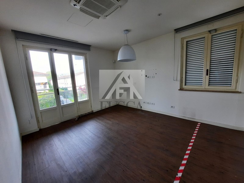 Lucca zona Ospedale 1,2 km dalle mura affittasi ufficio posto al piano primo in edificio commerciale dotato di ascensore, composto da vano scale d'ingresso,4 vani direzionali, con zona reception. Corredata da giardino privato e parcheggio. Dotata di impianti di condizionamento e allarme.Eleganti finiture pronta consegna. € .1.200 mensili rif. 5738