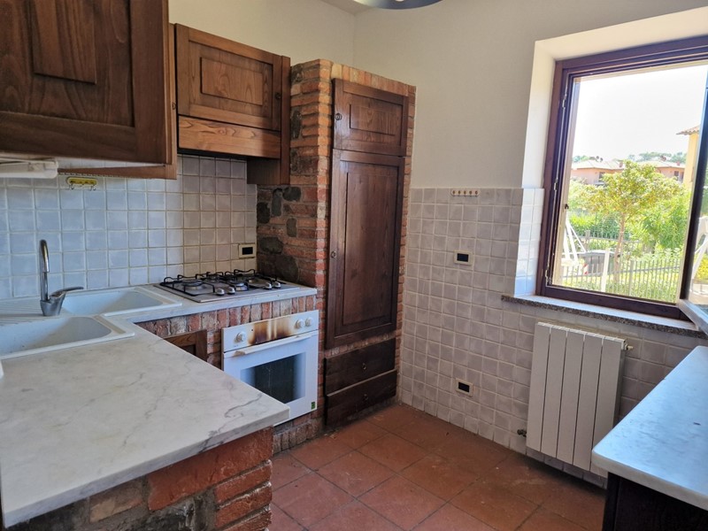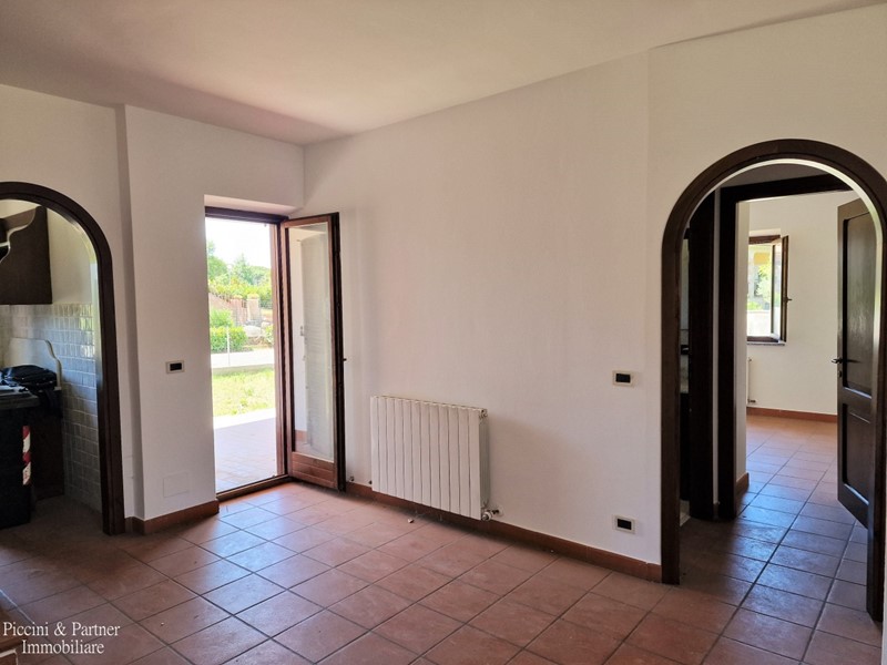 Piano terra, ingresso, ampio soggiorno con camino, cucina separata, camera, bagno con doccia, portico e giardino con accesso carrabile e pedonale.