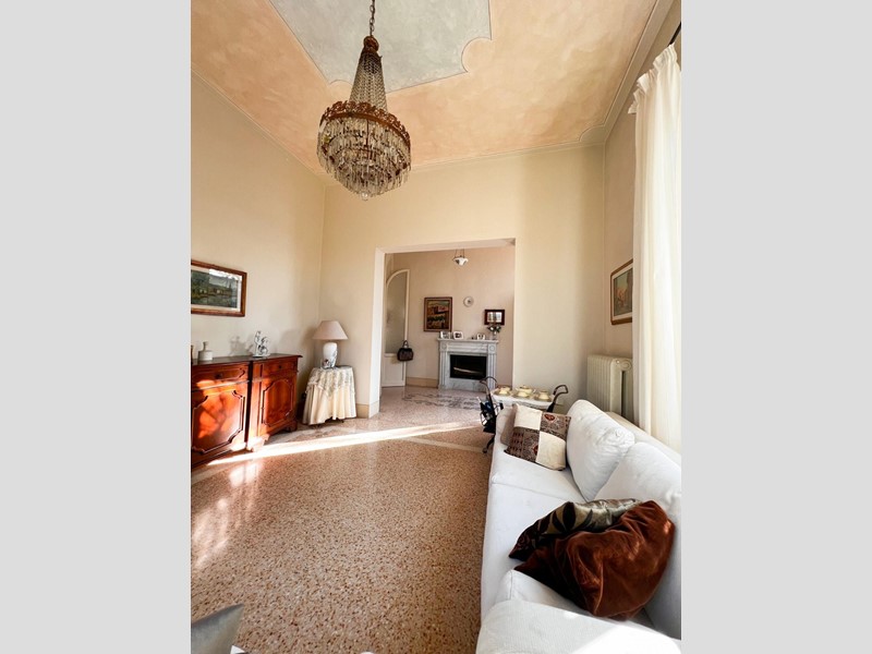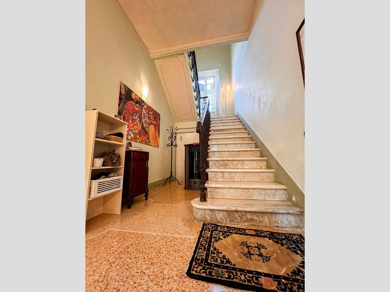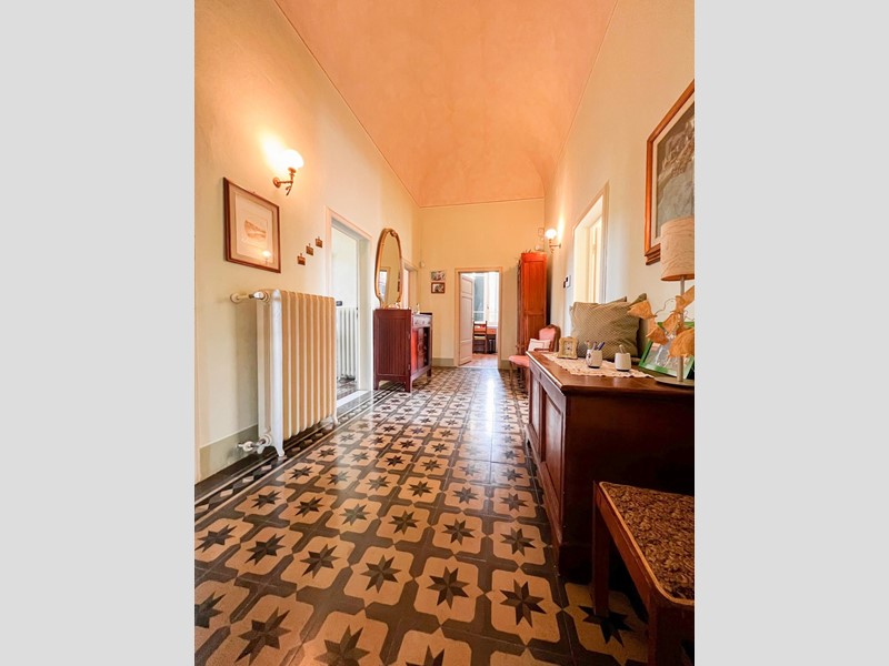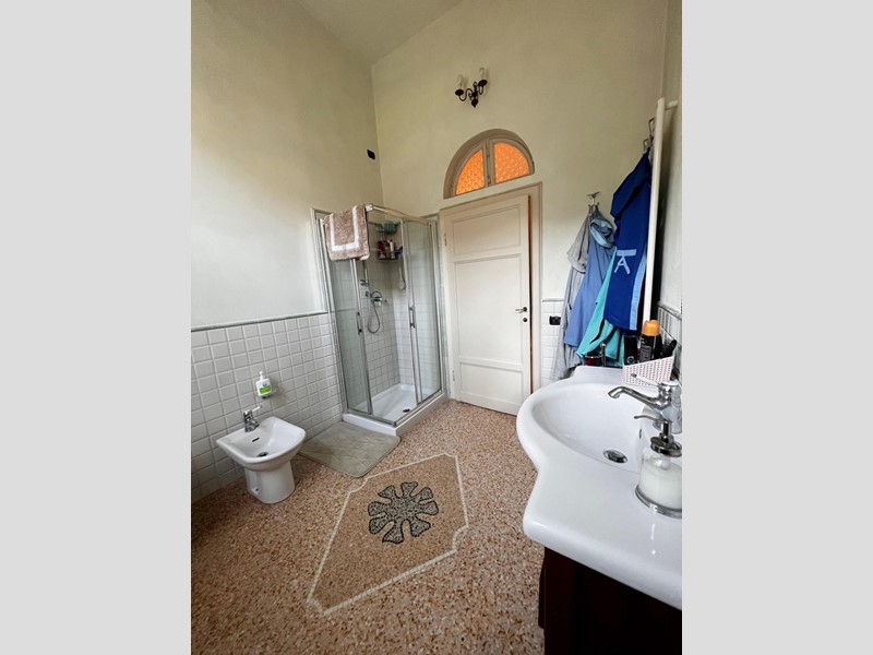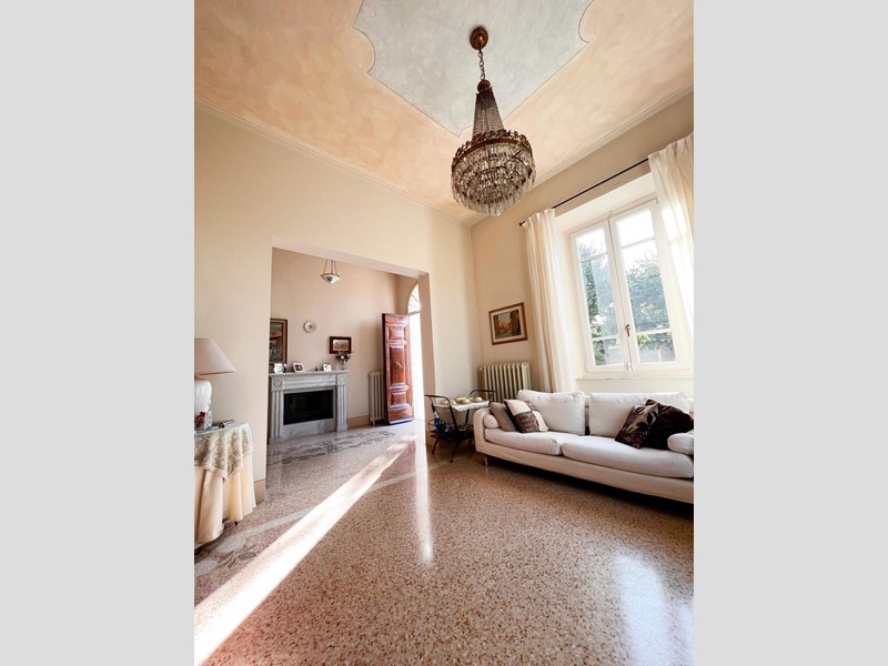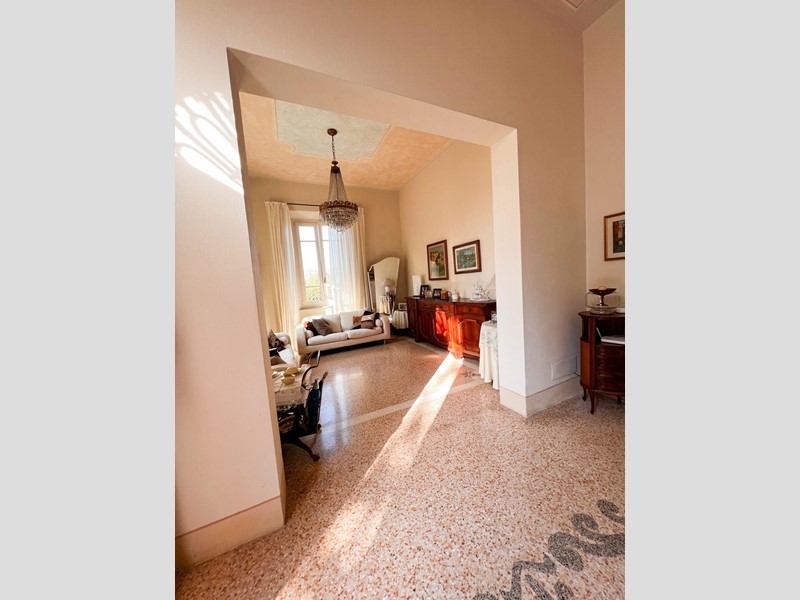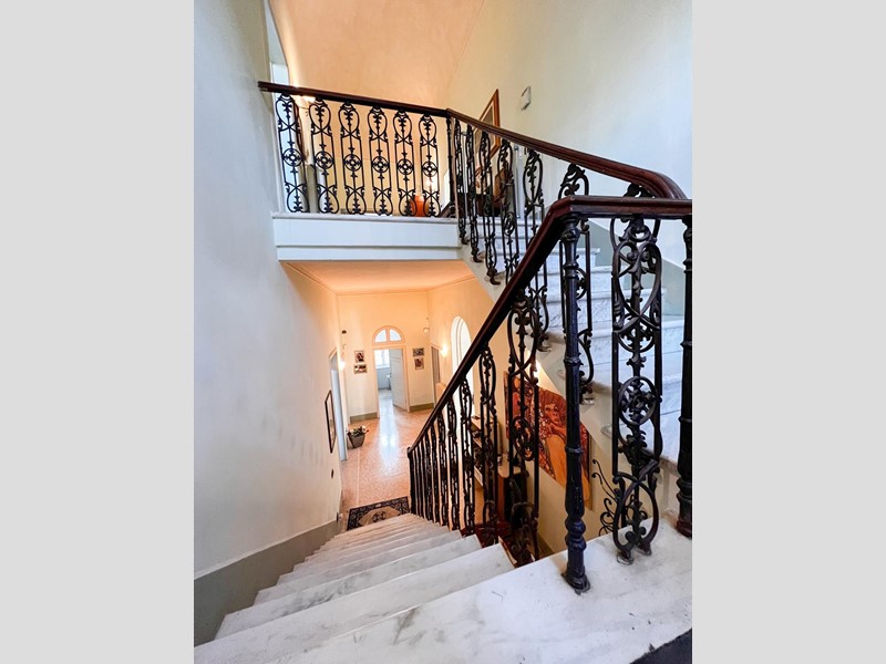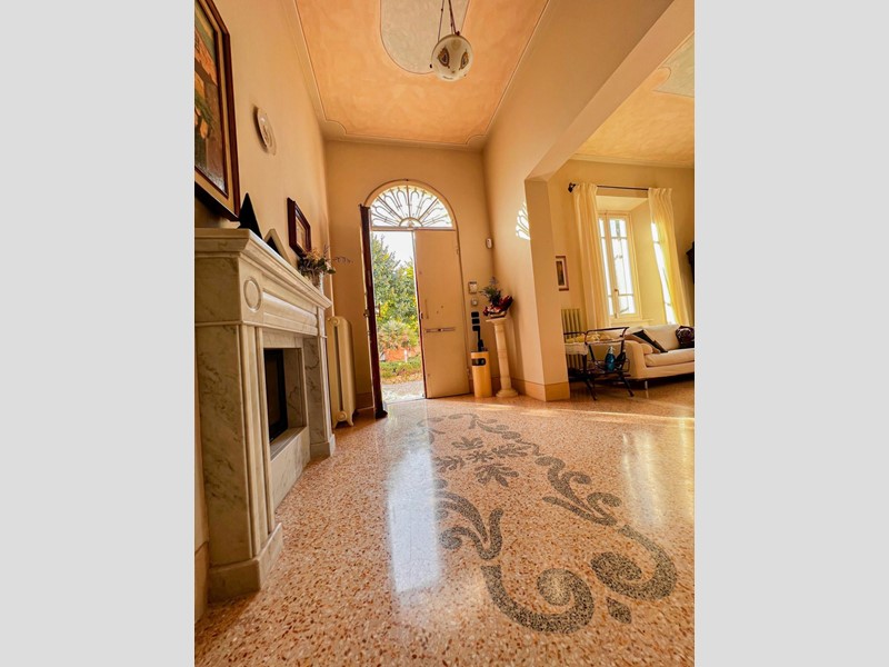 La villa dispone di diverse entrate, tra cui la principale al piano terra dove si può apprezzare un pregiato pavimento in veneziana artigianale e soffitti affrescati; il piano è composto da grande ingresso aperto sul soggiorno con caminetto in marmo a vista che si collega con altro vano giorno, termosifoni d’epoca finemente restaurati, disimpegno con bellissima scala, ulteriore salotto, cucina abitabile con forno e lavello d’epoca, accessi al giardino e alla sala da pranzo di generose dimensioni. Il piano primo, dove troviamo pregiati pavimenti originali d’epoca e pavimenti di parquet lucidato a cera, si compone di 4 camere matrimoniali climatizzate, salottino di passo o zona filtro, balcone, bagno grande con vasca jacuzzi oltre a comodo vano pluriuso con predisposizione per altro bagno; botola per la soffitta. La dependance è stata anch'essa ristrutturata, climatizzata e all'interno troviamo un vano utile per la cucina ed uno per la zona notte, bagno con finestra e doccia.