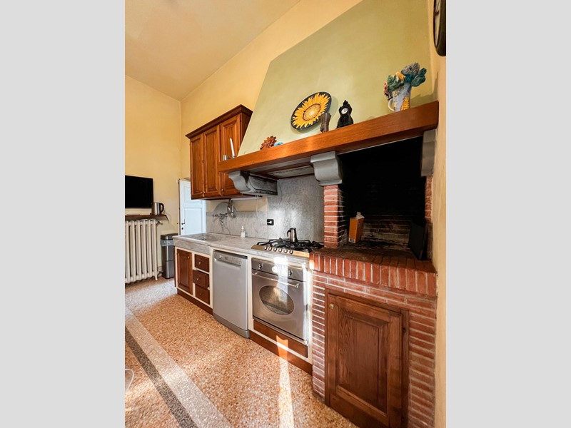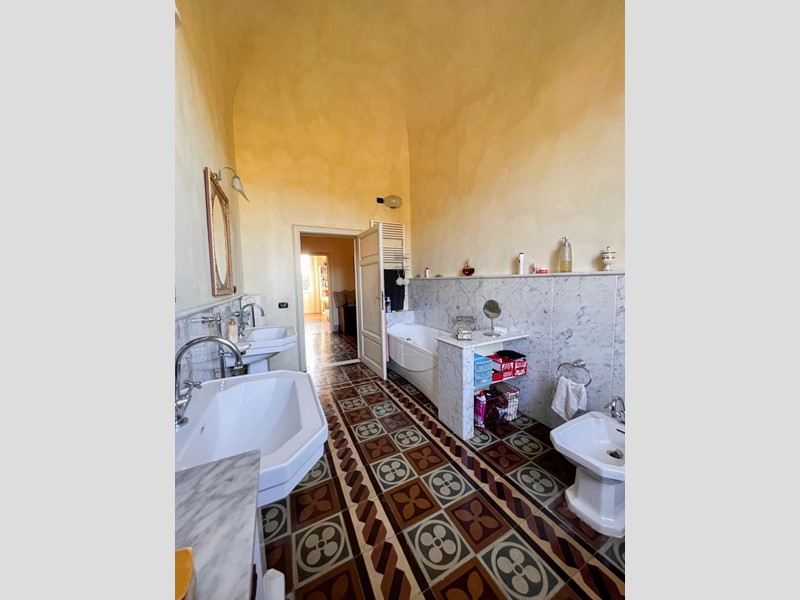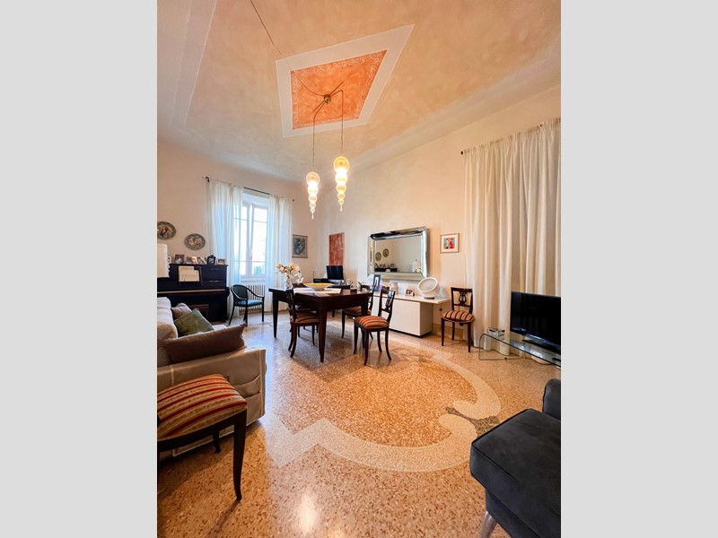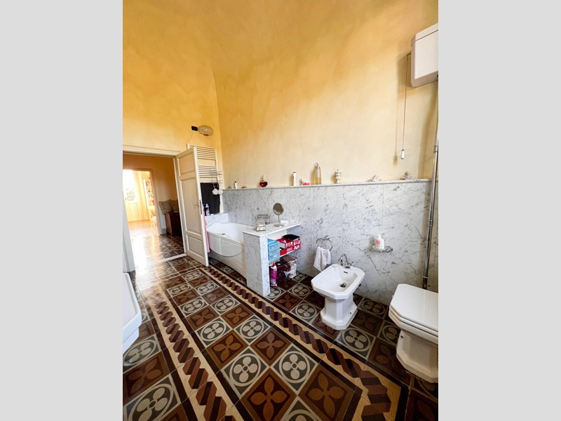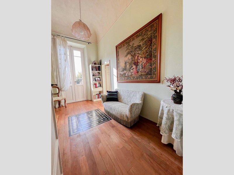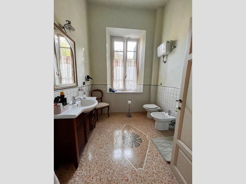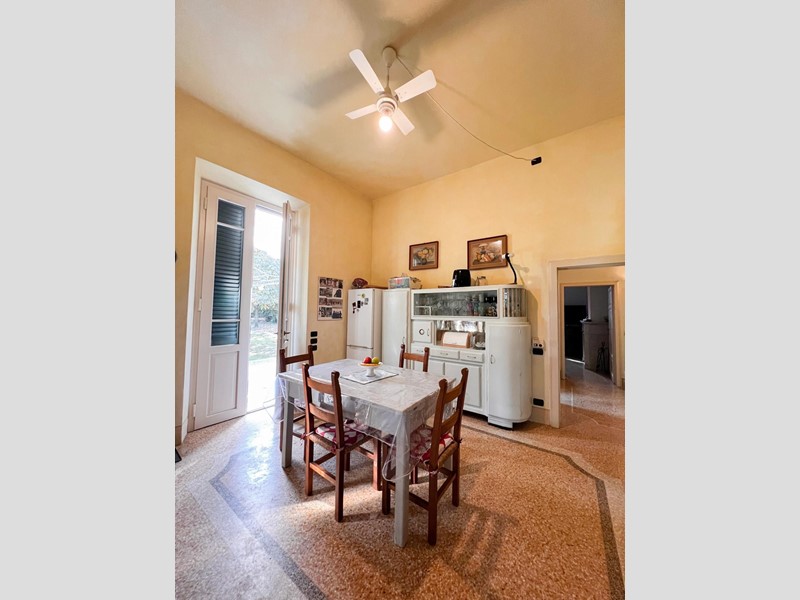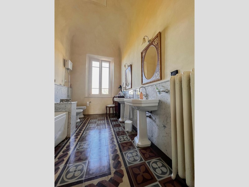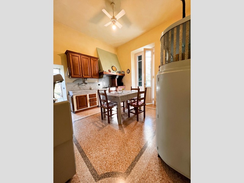 La villa dispone di diverse entrate, tra cui la principale al piano terra dove si può apprezzare un pregiato pavimento in veneziana artigianale e soffitti affrescati; il piano è composto da grande ingresso aperto sul soggiorno con caminetto in marmo a vista che si collega con altro vano giorno, termosifoni d’epoca finemente restaurati, disimpegno con bellissima scala, ulteriore salotto, cucina abitabile con forno e lavello d’epoca, accessi al giardino e alla sala da pranzo di generose dimensioni. Il piano primo, dove troviamo pregiati pavimenti originali d’epoca e pavimenti di parquet lucidato a cera, si compone di 4 camere matrimoniali climatizzate, salottino di passo o zona filtro, balcone, bagno grande con vasca jacuzzi oltre a comodo vano pluriuso con predisposizione per altro bagno; botola per la soffitta. La dependance è stata anch'essa ristrutturata, climatizzata e all'interno troviamo un vano utile per la cucina ed uno per la zona notte, bagno con finestra e doccia.