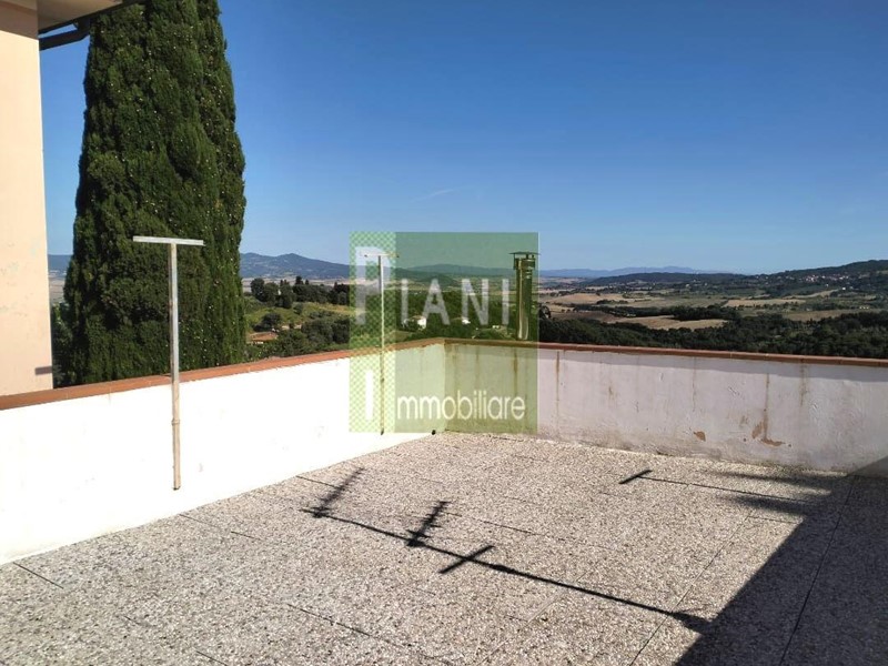 A): Piano terreno: ingresso, soggiorno con cucinotto, 1° piano: camera matrimoniale con accesso ad ampia terrazza abitabile panoramica con vista sulle colline Toscane, studio con balcone e bagno con vasca e finestra. + soffitta.