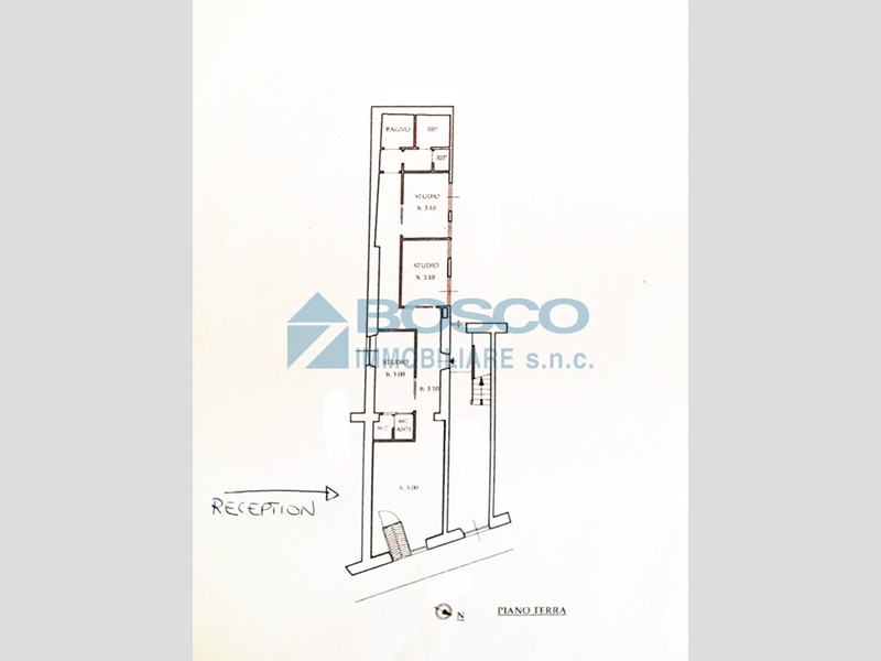Distribuzione degli spazi: 3 stanze/ambulatori, ampia sala d'attesa, 2 servizi