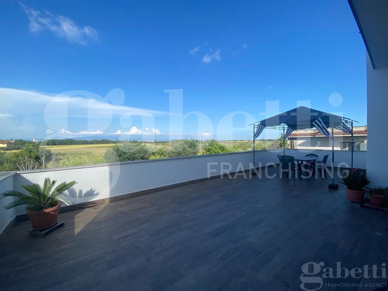 Proponiamo in vendita appartamento di ampia metratura totalmente ristrutturato, posto al primo piano in una palazzina di due sole unità abitative con garage di 96 mq al piano terra. L'appartamento, di 150mq. circa, è strutturato su un unico livello ed è composto da: ingresso, cucina americana con ripostiglio/dispensa, ampio salone con terrazzo panoramico di 52mq. a livello, tre camere da letto, di cui la padronale con bagno e cabina armadio, bagno, zona lavanderia e due balconi. L'immobile è dotato di riscaldamento autonomo alimentato da caldaia Daikin, pompa di calore, condizionatori, pannelli fotovoltaici da 3,5 Kw, predisposizione per acqua sanitaria, inferiate, tapparelle elettriche e zanzariere; pozzo e fossa biologica con regolare trattamento delle acque reflue. Totalmente ristrutturato internamente, con rifiniture di pregio, nel 2018, e appena terminata la ristrutturazione 110% con cappotto termico e facciata esterna. L'immobile, collocato su strada chiusa e residenziale, si trova nelle immediate vicinanze della SS Pontina direzione Roma e Latina e vicino al centro commerciale Aprilia2.