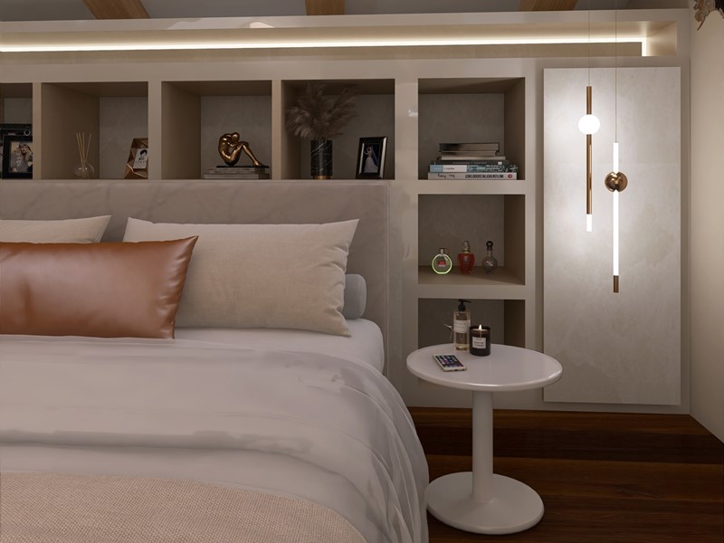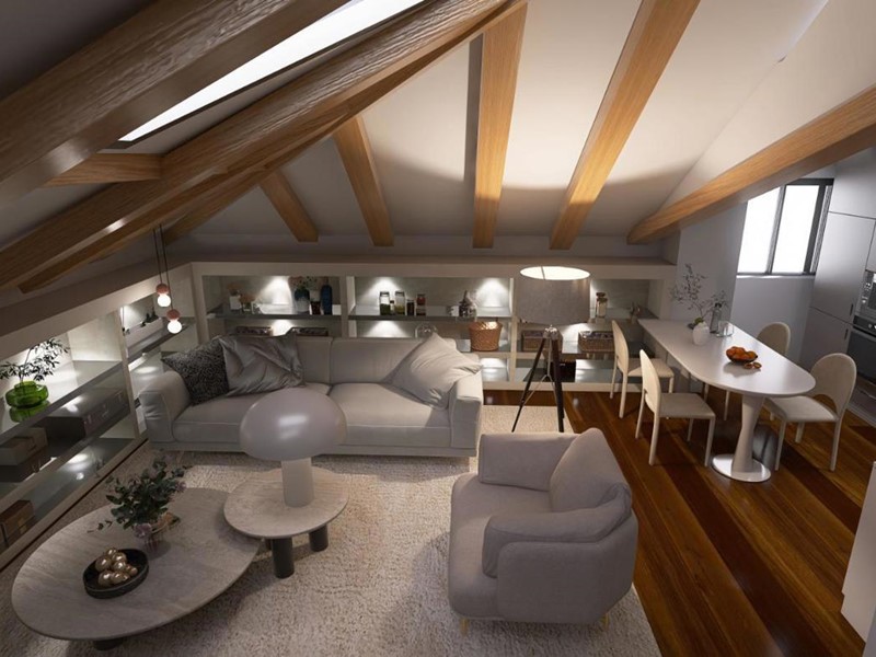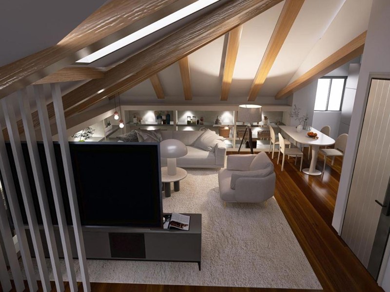 L'appartamento è composto da ingresso che conduce al soggiorno di ampia metratura con cucina vista da cui si accede al terrazzo, la zona notte rimane ben divisa dove sono presenti due camere di cui una con cabina armadio e doppi servizi.