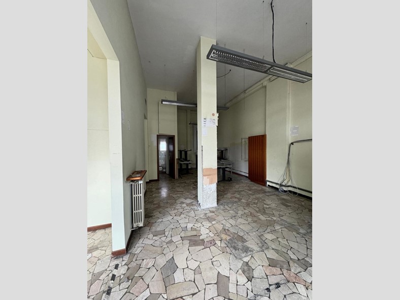 L'immobile è dotato di due vetrine fronte strada, un grande locale open space nel quale erano sistemate le diverse postazioni lavoro, un ulteriore ufficio separato e due bagni.