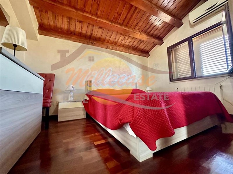Il corpo principale è disposto su due livelli per circa 200 mq ed è cosi composto: a piano terra con Ingresso su ampia zona giorno tutta a piano terra con salone triplo, cucina abitabile a vista, con affaccio sul giardino, una camera da letto, bagno e ripostiglio/lavanderia, precede l'ingresso un'ampia e comoda veranda in legno di 50 mq circa; a primo piano si accede da una scala caratteristica in legno e ci sono 4 camere da letto, un bagno ed un terrazzino a livello con tetto in legno di circa 20 mq. Pannelli fotovoltaici di 6Kw con 15 Kw di batterie - solare termico con centralina per ricarica auto elettrica. accessori: n. 7 climatizzatori di cui 3 da 18000 btu, 2 da 9000 btu e 2 da 12000 btu.