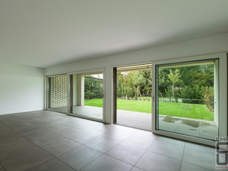 L’immobile è così composto: ingresso alla proprietà da spazio pubblico, bel giardino privato sul fronte abitazione, ed al piano rialzato l’ingresso all’ abitazione così cosituita: ingresso/disimpegno, zona living/divani, a seguire la cucina (open con il soggiorno ma volendo anche separabile) con attiguo vano tecnico parzialmente utilizzabile a dispensa/lavanderia; disimpegno e bagno completo; una comoda scala interna conduce al piano primo ed ultimo composto da disimpegno tre camere e secondo servizio igienico. Al piano interrato un garage doppio con ingresso pedonale dal giardino privato e carrabile dalla rampa esterna. L’oggetto si contraddistingue per 4 fondamentali peculiarità: