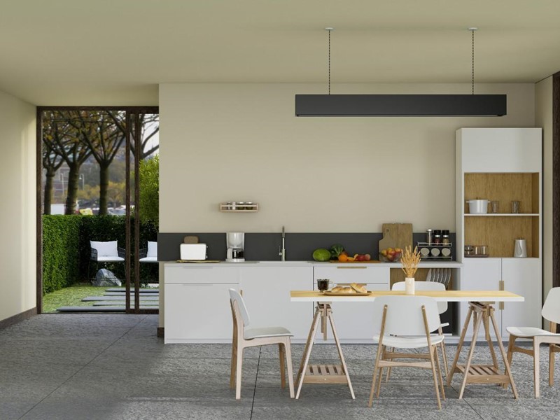 PROGETTO TECNOLOGICO: capitolato di livello in tutte le sue sfaccettature in cui è stata dedicata una particolare attenzione al tema del risparmio energetico. Tamponamenti esterni isolanti con laterizio termico di spessore 40 cm; gestione dei ponti termici con coibentazioni nelle parti in cemento armato, serramenti con vetri di spessore maggiorati per soddisfacimento standard acustico e termico, impianto di riscaldamento a pannelli radianti di ultima generazione con sistema combinato composto da una Pompa di Calore, e da un Accumulo di acqua di 200 litri. Pannelli fotovoltaici in copertura ad integrazione della Pompa di Calore per produzione acqua a bassa temperatura per gli stessi pannelli radianti e per l’accumulo di acqua per l’acqua calda sanitaria. Raffrescamento sempre garantito dal pannello radiante con predisposizione di apposito deumidificatore su richiesta dell’acquirente. Tutto il pacchetto permetterà di raggiungere una classificazione energetica di livello A.