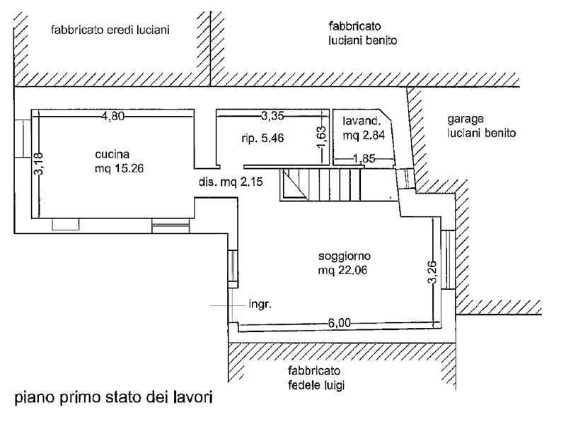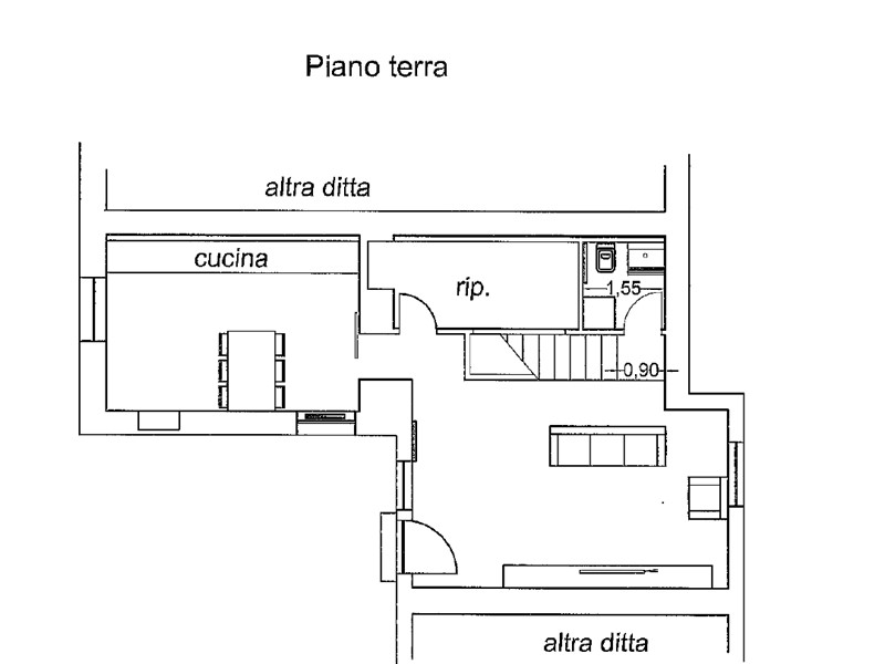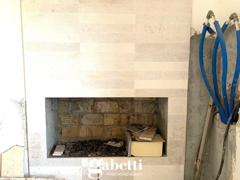- Piano terra : ingresso sulla zona living con salottino, cucina abitabile con camino e una zona di servizio con bagno e ripostiglio.