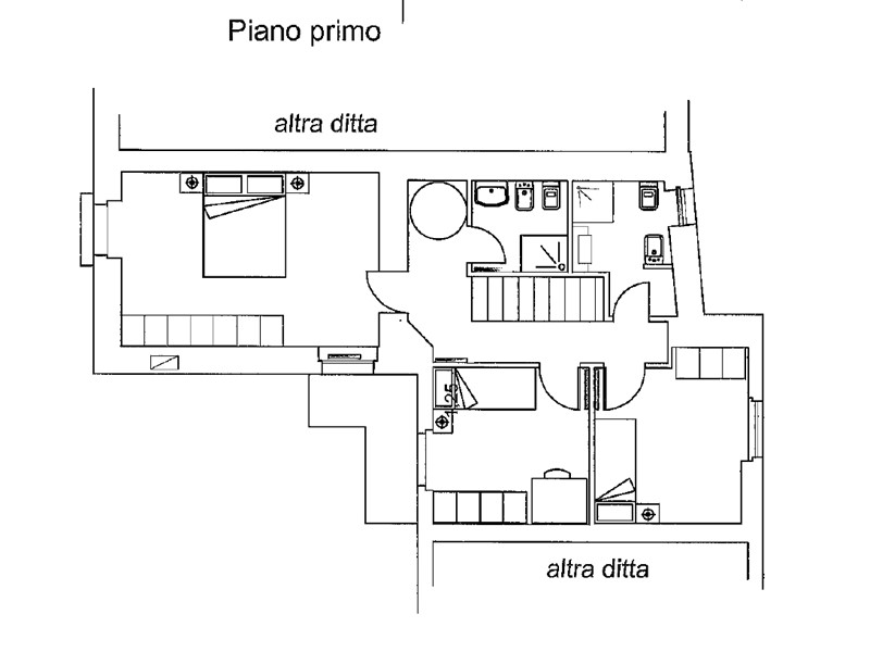- Piano primo: una camera matrimoniale con balcone, due camerette e due bagni.