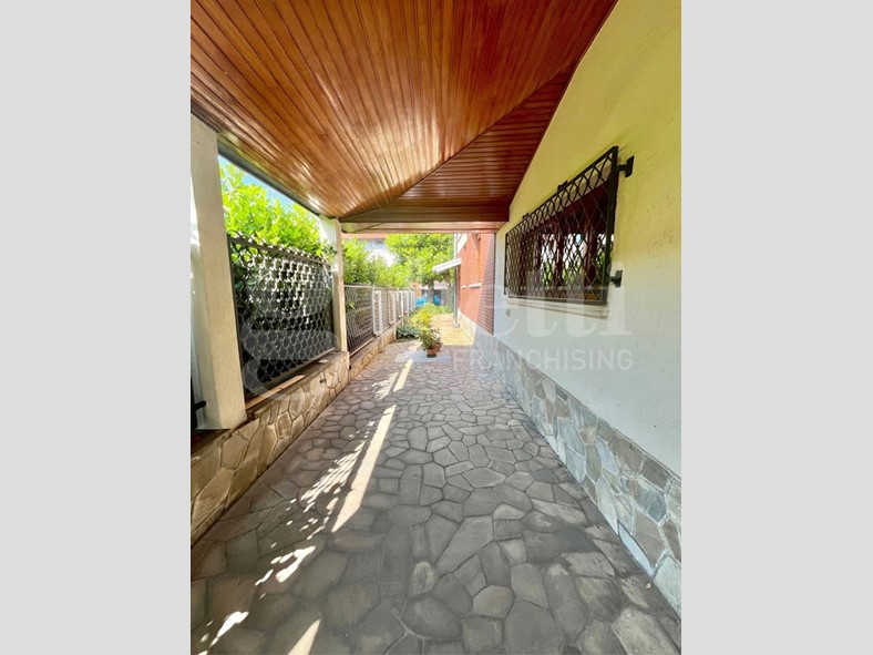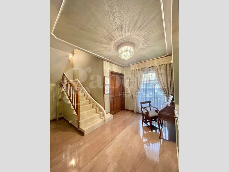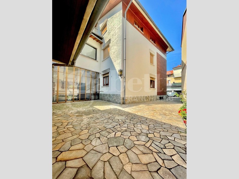 Senago centro via Repubblica nelle immediate vicinanze dei principali servizi, proponiamo elegante villa singola dalle ampie metrature. Al piano terra troviamo un salone doppio, cucina abitabile, soggiorno, bagno e un comodo locale caldaia/lavanderia; dalla cucina si accede all'area esterna verandata e in parte chiusa con vetrate che la rendono sfruttabile quasi tutto l'anno. Al piano primo troviamo 3 ampie camere matrimoniali, 2 bagni e uno studio con camino. Al piano secondo, non abitabile troviamo locali hobby e ripostigli. La grande metratura dei 2 piani e il posizionamento della scala offrono la possibilità di dividere l'abitazione e creare una villa bifamiliare. Completano la proprietà un comodo box doppio al piano terra e una cantina al piano S1. Le ultime otto foto si riferiscono ad un esempio di render di come i locali del piano terra potrebbero diventare a seguito di una ristrutturazione.