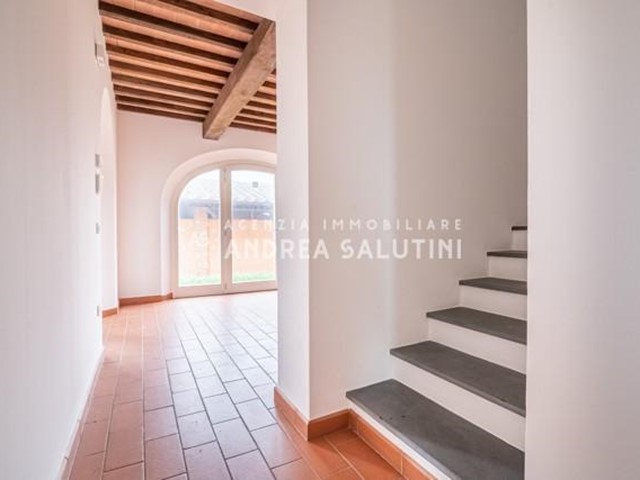 MONTECCHIO -- NOSTRA ESCLUSIVA -- Villetta a schiera ANGOLARE di 160 mq, CON AMPIO GIARDINO DI MQ 350 SU TRE LATI, finiture in STILE RUSTICO, immersa nel verde della campagna ma a 5 chilometro dall' ingresso della SUPERSTRADA FI-PI-LI. L' immobile è composto a piano terra da: cucina ABITABILE CON AMPIA LOGGIA, soggiorno AMPIO, studio e bagno , al PRIMO PIANO troviamo 3 camere di cui una matrimoniale , una DOPPIA ed una singola, e bagno. Completa la proprietà UN AMPIO GARAGE. -- Classe energetica: A4 - Rif. 1103