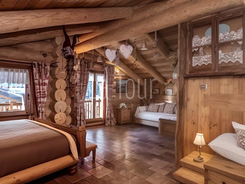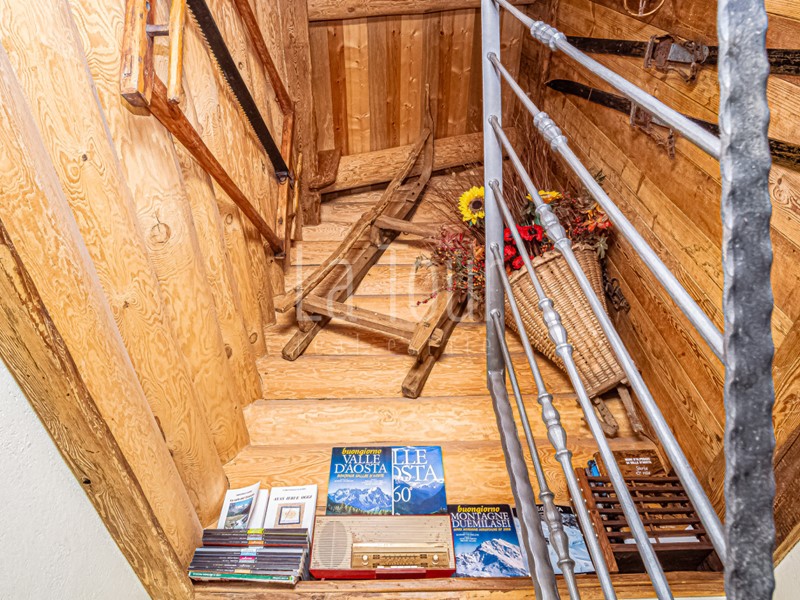 La sala al piano superiore sottotetto ha uno spiccato carattere montano che emana un fascino avvolgente grazie al pavimento ed alle pareti rivestite in pregiato larice, mentre il soffitto si distingue per la presenza di travi a vista che conferiscono al luogo un'aura distintiva. Questo piano si presenta attualmente come una tela bianca, pronta ad essere trasformata in una suggestiva zona notte completa di un balcone che aggiunge ulteriore charme all'ambiente.