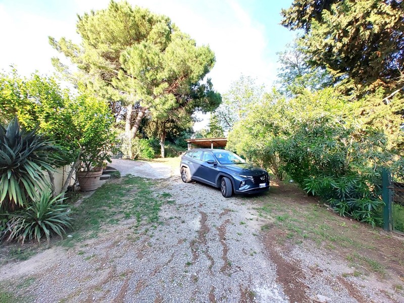 In posizione panoramica immediatamente fuori dal borgo di Usigliano tramite un cancello carrabile accediamo a questa porzione di casale libera su tre lati circondata da giardino esclusivo con posti auto e annesso uso garage unito ad un antico forno e ad un locale magazzino.