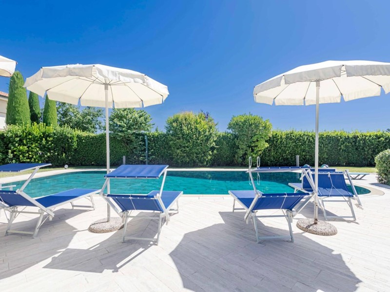 La favolosa piscina costituisce il valore aggiunto di questa elitaria dimora.