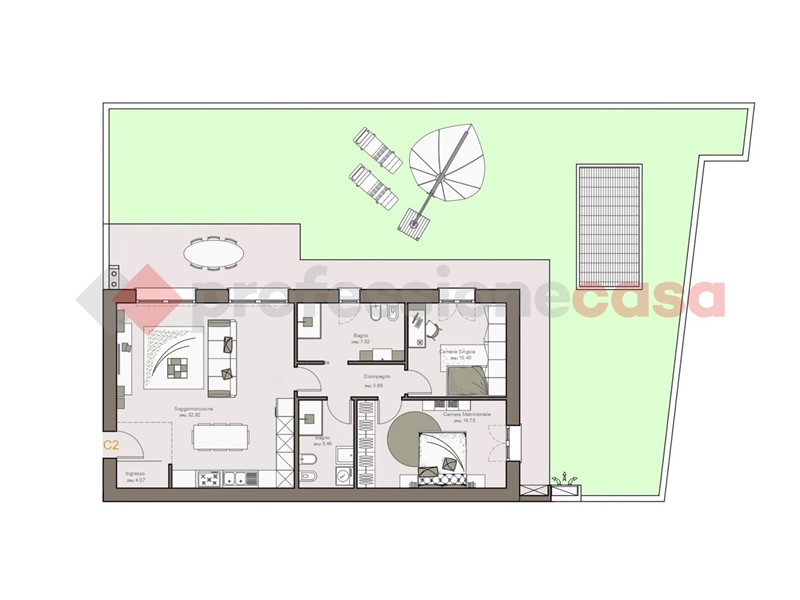 L'immobile vanta un giardino privato, ideale per momenti di relax all'aria aperta, e un box doppio per il parcheggio. Le caratteristiche interne includono un impianto di riscaldamento a pavimento alimentato da pompa di calore, soggiorno living con angolo cottura e due camere da letto. La doppia esposizione angolare garantisce luminosità.