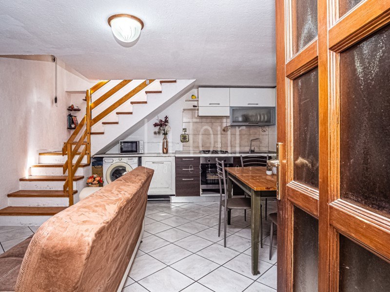 L'unità che si sviluppa verso l'alto, come già accennato, ospita la zona giorno al piano d'ingresso. Il livello superiore, accessibile tramite una scala interna, presenta una suggestiva copertura lignea con orditura a vista. Questo piano comprende due camere da letto, un bagno e un pratico ripostiglio ricavato nello spazio sottotetto. A differenza dell'unità sottostante, questa è impreziosita da un ampio balcone che si estende longitudinalmente lungo l'intero prospetto meridionale dell'edificio, creando un armonioso dialogo tra spazi interni ed esterni.??