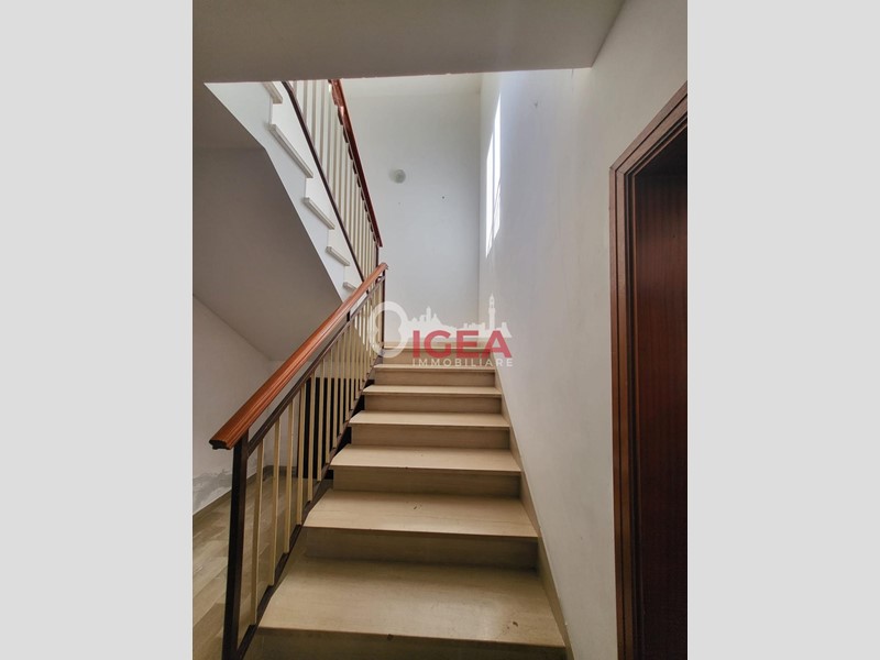 Al piano terra si trovano due garage molto ampi con accesso tramite scala interna si accede al piano primo, dove si sviluppa l'appartamento ed è composto da un corridoio, una cucina abitabile e una sala da pranzo ampia con terrazzo, una camera matrimoniale luminosa , una grande camera con terrazzo e bagno interno finestrato una camera doppia e un secondo bagno finestrato.